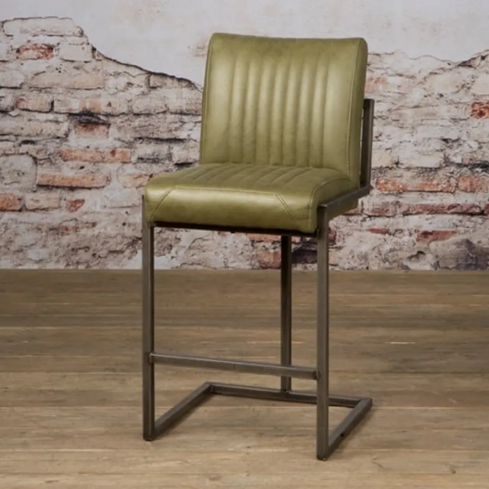 Barstoel België is een comfortabele barkruk met een eigentijdse, stoere uitstraling. De zitting is bekleed met stevige microvezelstof en voorzien van decoratieve verticale stiknaden in de rugleuning, wat zorgt voor een krachtig en stijlvol karakter. De vaste armleuningen bieden extra comfort, terwijl het zwart metalen sledeframe met geïntegreerde voetensteun zorgt voor stabiliteit en een licht verend zitgevoel. België is verkrijgbaar in diverse kleuren, waaronder antraciet, cognac en zwart, en past perfect bij een bartafel of kookeiland met een industriële of moderne look.
