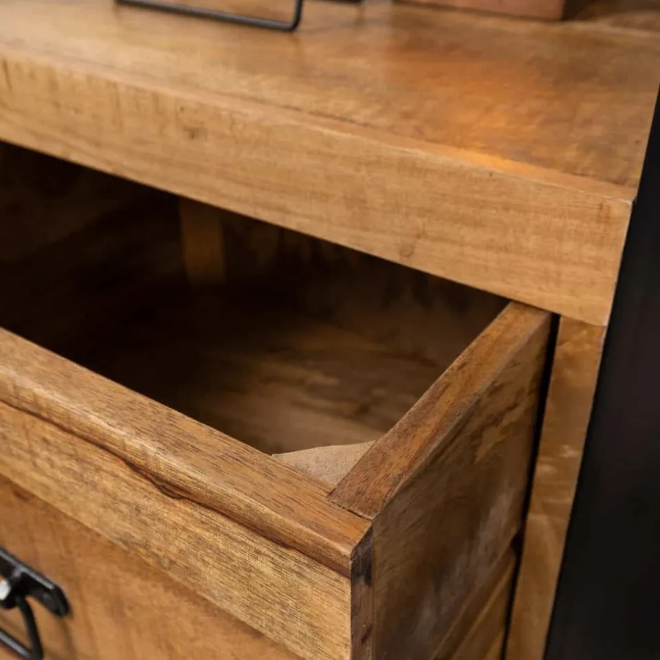 Mango hout is een natuurproduct met unieke kleurschakeringen en nerfstructuren. Voor het behoud van de kwaliteit adviseren we om het hout regelmatig te behandelen met meubelolie. Vermijd langdurig gebruik van plastic of niet-ademende materialen op het oppervlak en gebruik onderzetters om kringen of vlekken te voorkomen. De metalen accenten kun je eenvoudig reinigen met een droge of licht vochtige doek.