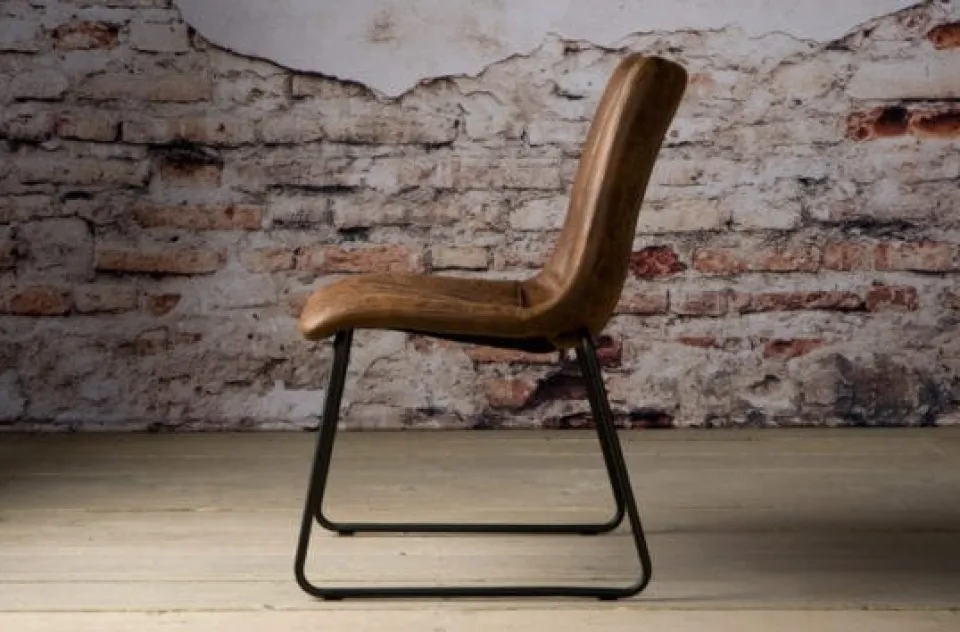Eetkamerstoel Bruno is een stoere en comfortabele stoel met een krachtige uitstraling. De zitting is bekleed met onderhoudsvriendelijke microvezelstof en heeft een rechte, robuuste vormgeving die versterkt wordt door de strakke lijnen en dubbele horizontale stiknaden in de rugleuning. De vaste armleuningen bieden extra comfort, terwijl het zwarte metalen sledeframe zorgt voor een stabiele basis én een licht verend zitgevoel. Bruno is verkrijgbaar in diverse kleuren, waaronder cognac, antraciet en zwart, en past perfect in een industrieel of modern interieur.