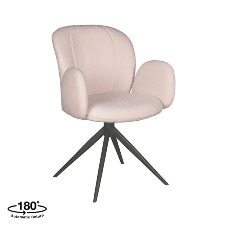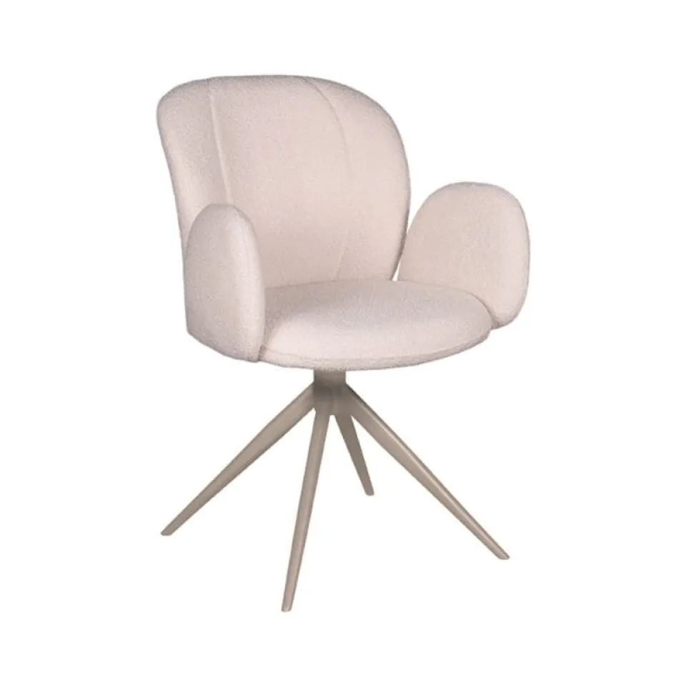 Eetkamerstoel Kimball is een luxe draaistoel die uitblinkt in comfort en uitstraling. De zitting is bekleed met hoogwaardige Natural Touch stof en voorzien van een licht gebogen rugleuning, wat zorgt voor een ontspannen zitpositie tijdens lange avonden aan tafel. Het stevige metalen onderstel is draaibaar in 360 graden en verkrijgbaar in zwart of taupe, wat Kimball niet alleen praktisch maakt maar ook visueel krachtig. Deze stoel laat zich perfect combineren met broertjes Kimo (zonder armleuningen) of Neo (met open armleuningen) voor een speelse en stijlvolle eetkameropstelling.
