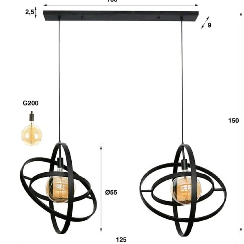De hanglamp Galaxy is uitgevoerd in metaal met een artic black finish. De drie ringen kunnen plat gedraaid worden, waardoor het een heel klein pakket wordt. Daarnaast geeft dit ook de mogelijkheid om de lamp naar eigen inzicht op te hangen. De lamp is tot 150 cm in hoogte verstelbaar. Er wordt aanbevolen LED lichtbron filament 20 cm te gebruiken.