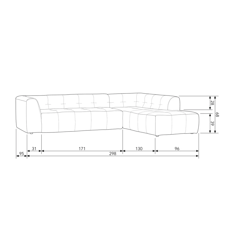 Daarnaast is Hoekbank Grid verkrijgbaar als 3-zits of als hoekbank, zodat je de opstelling eenvoudig afstemt op jouw woonruimte. Met zijn royale afmetingen van H 68 cm x B 298 cm x D 95/225 cm biedt deze bank volop ruimte om te loungen, samen te zijn of ontspannen te genieten van rustige avonden thuis.