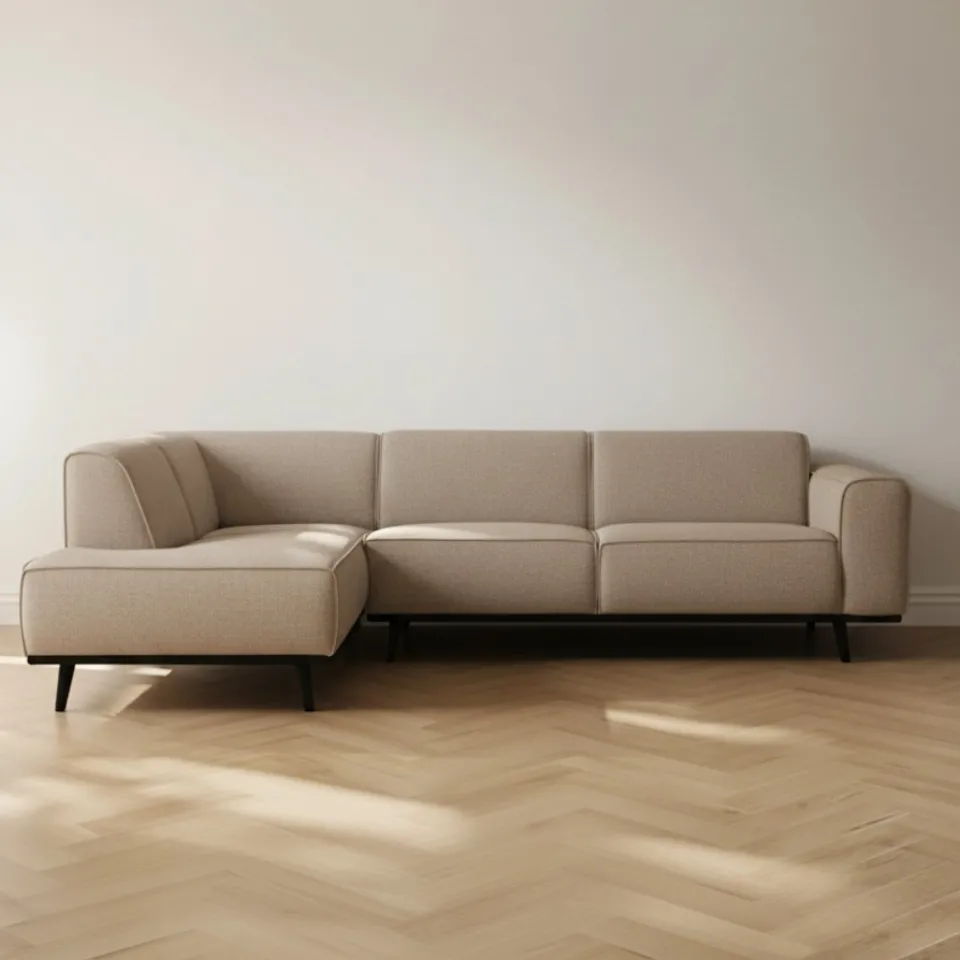 Strakke hoekbank met warme, moderne uitstraling