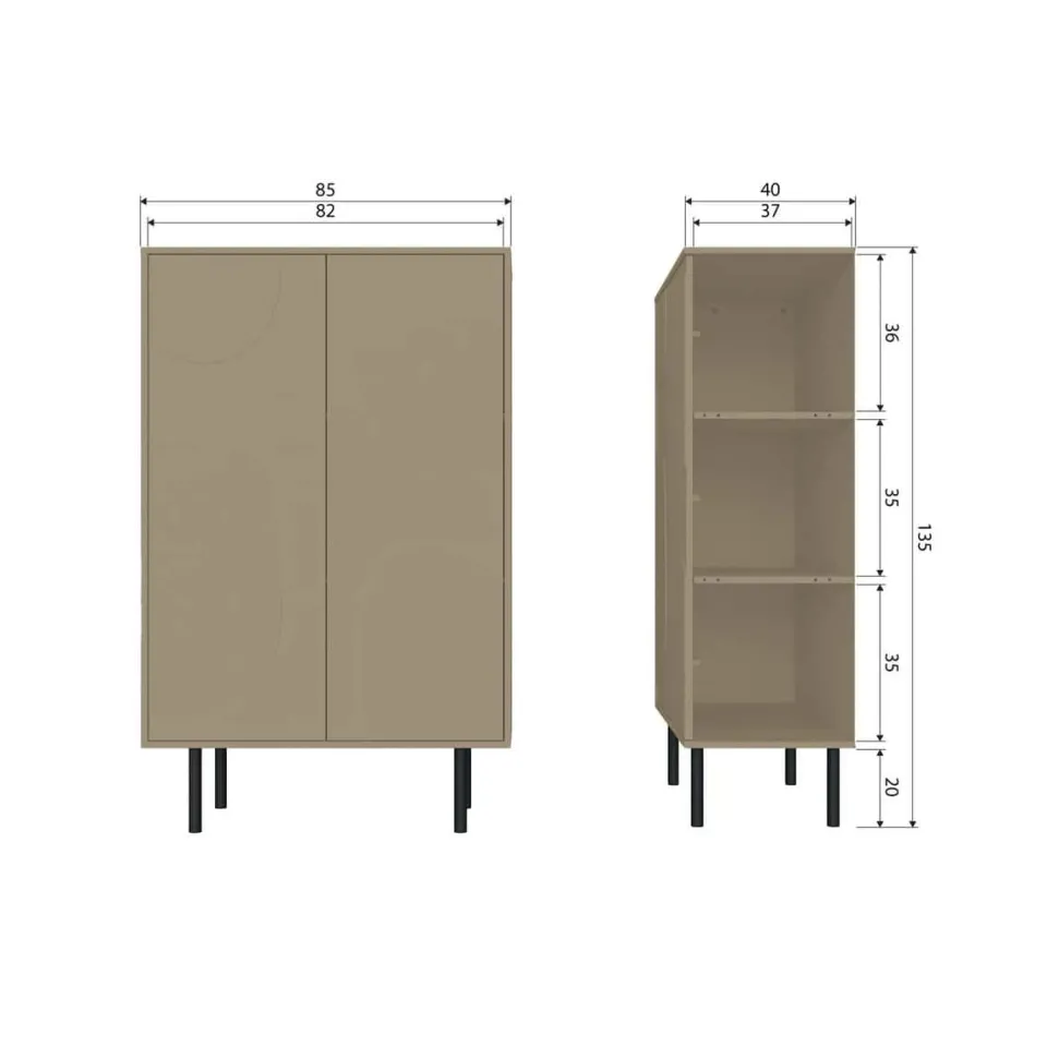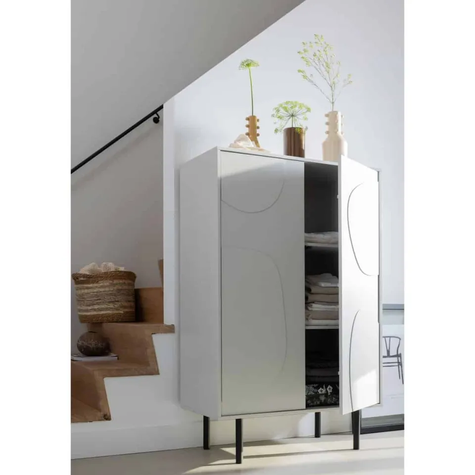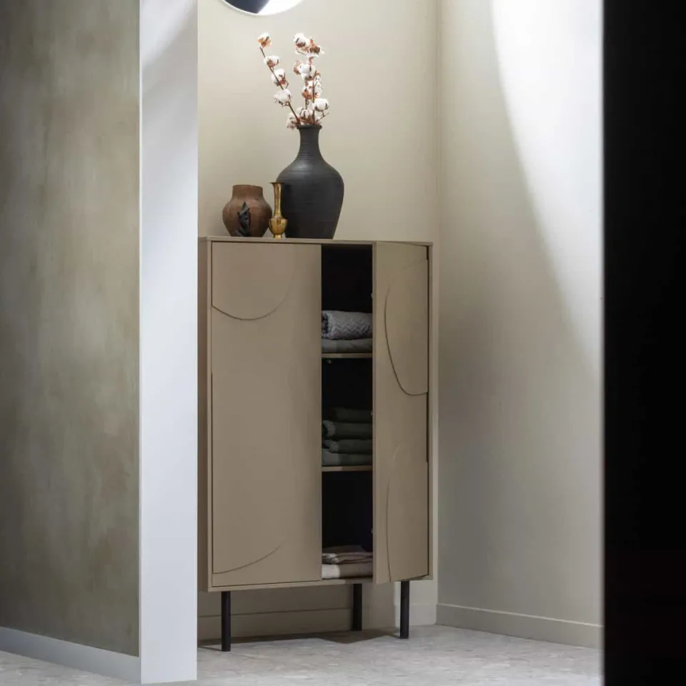 Een clean design, speels houtpatroon en een sprekend kleurcontrast. Dat zijn de kenmerken van deze Cadiz opbergkast uit de collectie van het Nederlandse interieurmerk WOOOD. De bruine afwerking houdt het ontwerp stijlvol en modern met als spannende tegenhanger de stoere, stevige zwarte poten. Het organische decor maakt dat het item speels oogt en zich goed laat gebruiken in een kinderkamer.