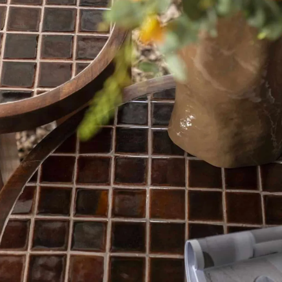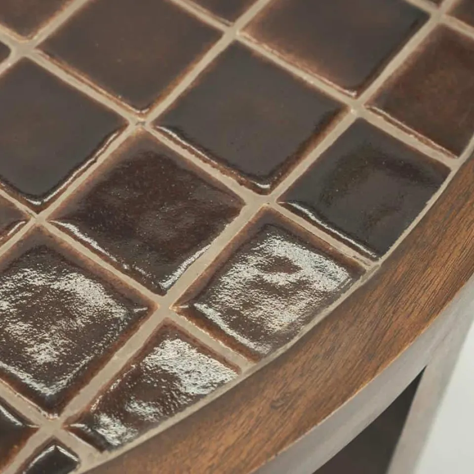 Salontafel Tiledup is een echte eyecatcher dankzij het ronde blad met keramisch tegelpatroon. Het warme bruine mangohout geeft de tafel een natuurlijke uitstraling, terwijl het ingelegde keramiek zorgt voor een uniek en speels accent.
