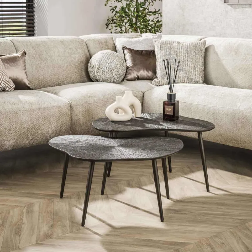De salontafel Thea is uitgevoerd in een set van twee. Het blad met verjongde rand is gemaakt van MDF en afgewerkt met een Ray Metal finish in een warme bruin-bronzen kleur. De poten zijn slank, licht taps en vervaardigd uit gepoedercoat staal in een bijpassende tint. De tafels kunnen samen of los van elkaar worden gebruikt.
