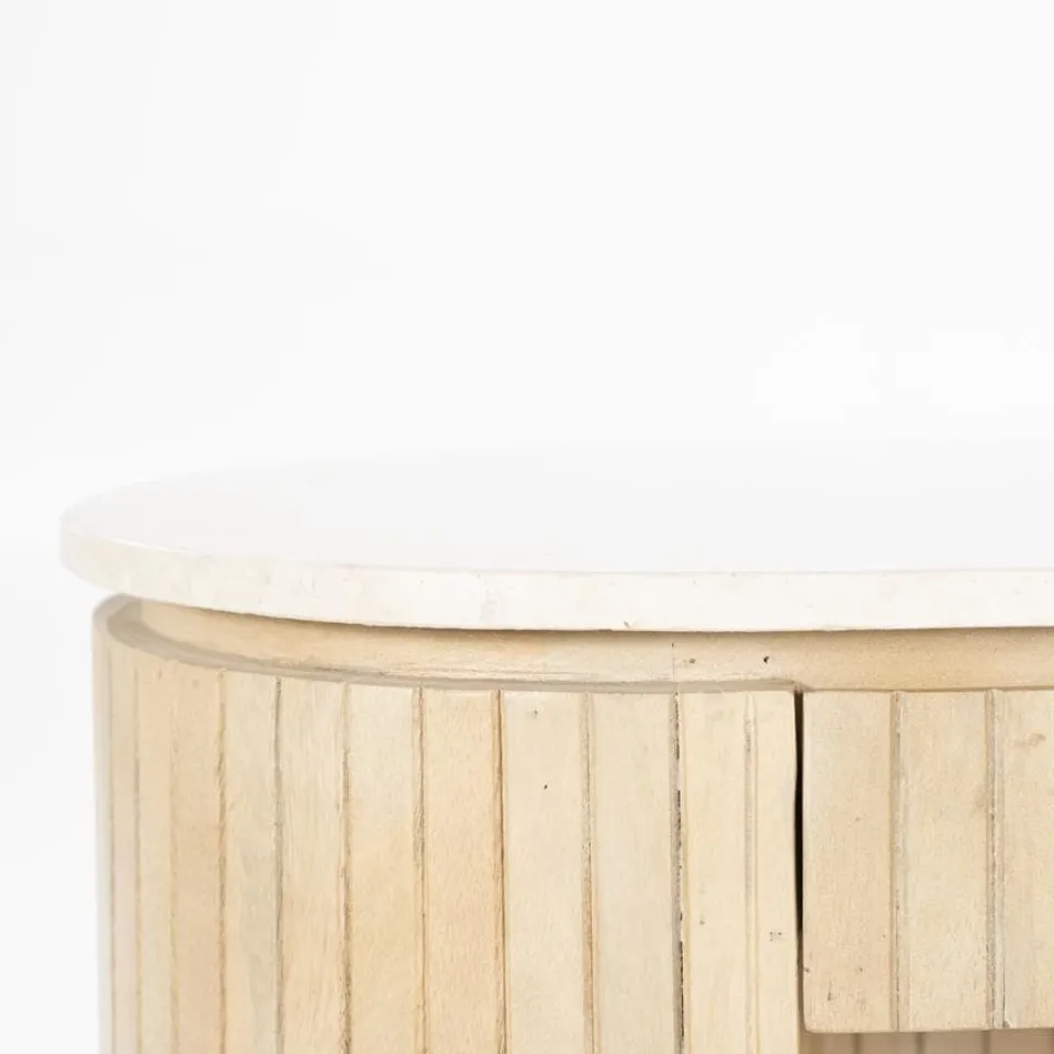Bureau Kira – een verfijnde combinatie van mangohout en marmer. Met zijn organische vormgeving straalt dit bureau elegantie en natuurlijke charme uit. Ideaal voor een moderne en stijlvolle werkplek!