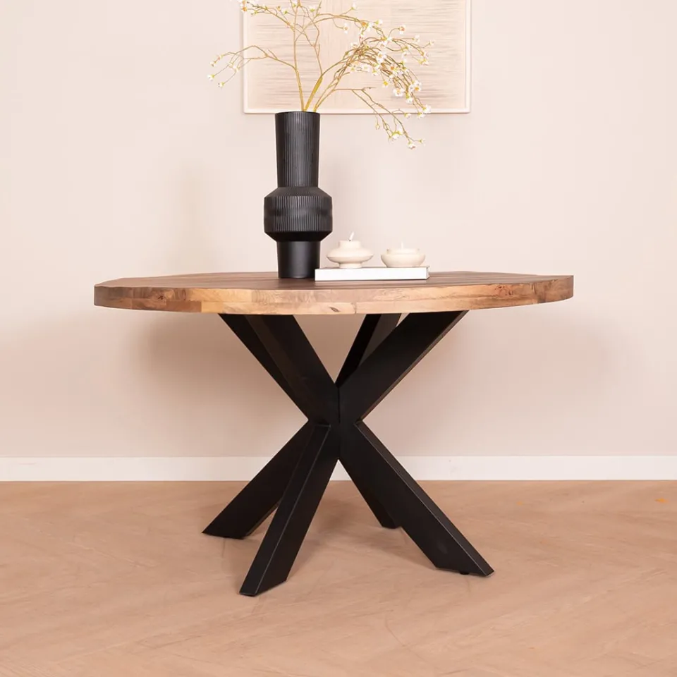 Eettafel Iris Premium mangohout metaal HUUS collectie is de luxe variant van onze populairste Iris tafel. Met een tafelblad van liefst 6 cm dik en een metalen spinpoot combineert hij robuustheid met elegantie. Bovendien is Mangohout gebruikt dat elke tafel uniek maakt qua kleur en nerfstructuur, wat zorgt voor authenticiteit en karakter.