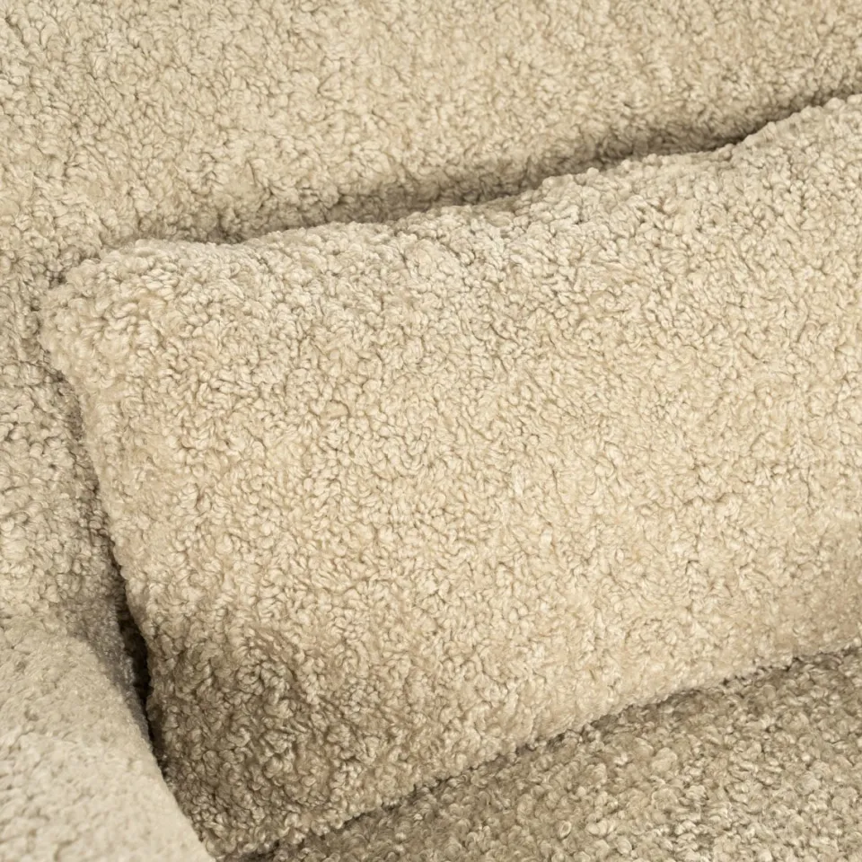Fauteuil Shaun van het Nederlandse merk Eleonora is een echte eyecatcher in jouw interieur. Deze comfortabele fauteuil is bekleed met een zachte beige bouclé stof en valt op door zijn ronde vormen en uitnodigende uitstraling. De combinatie van het organische design en de warme stof maakt Shaun perfect voor moderne woonstijlen, zoals Japandi of minimalistisch Scandinavisch. Dankzij het compacte formaat past hij moeiteloos in de woonkamer, leeshoek of slaapkamer.