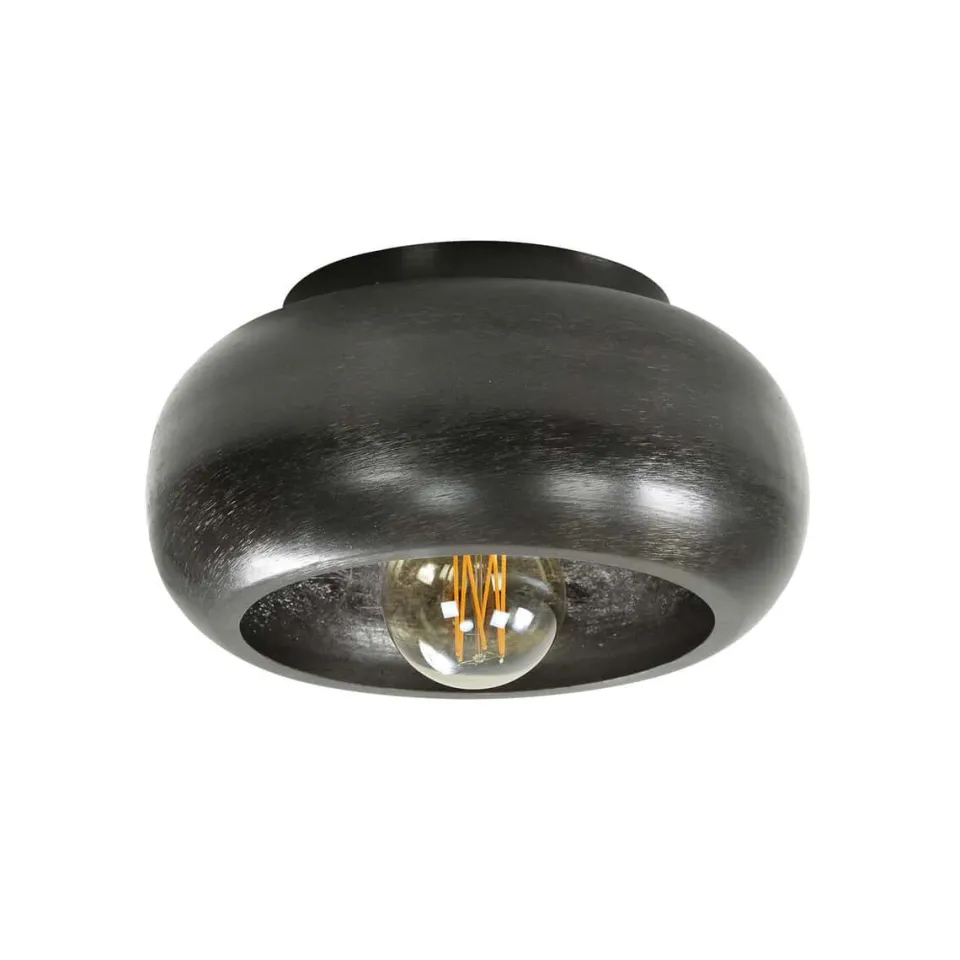 Deze plafondlamp Skylar is uitgevoerd in metaal met een ambachtelijke bewerking aan de binnenkant van de kap wat zorgt voor een prachtige reflectie.