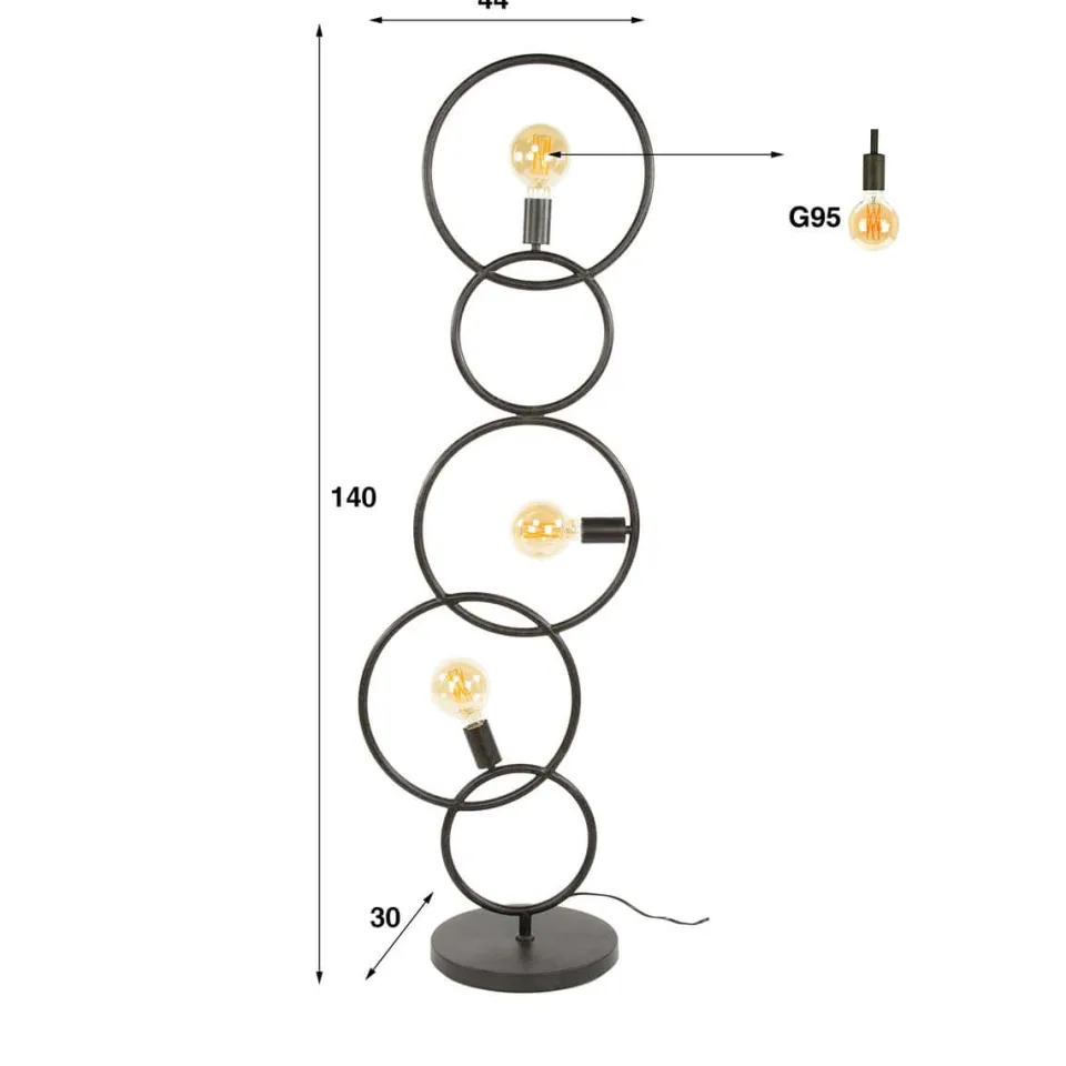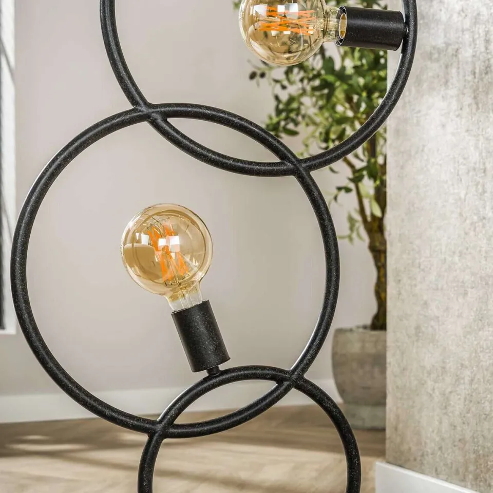 De vloerlamp Ceasar is uitgevoerd in metaal met een artic black finish. Het ontwerp bestaat uit meerdere metalen lussen die in hoogte verspringen en samen een grafisch lijnenspel vormen. De drie lichtbronnen zijn speels verdeeld over de constructie.
