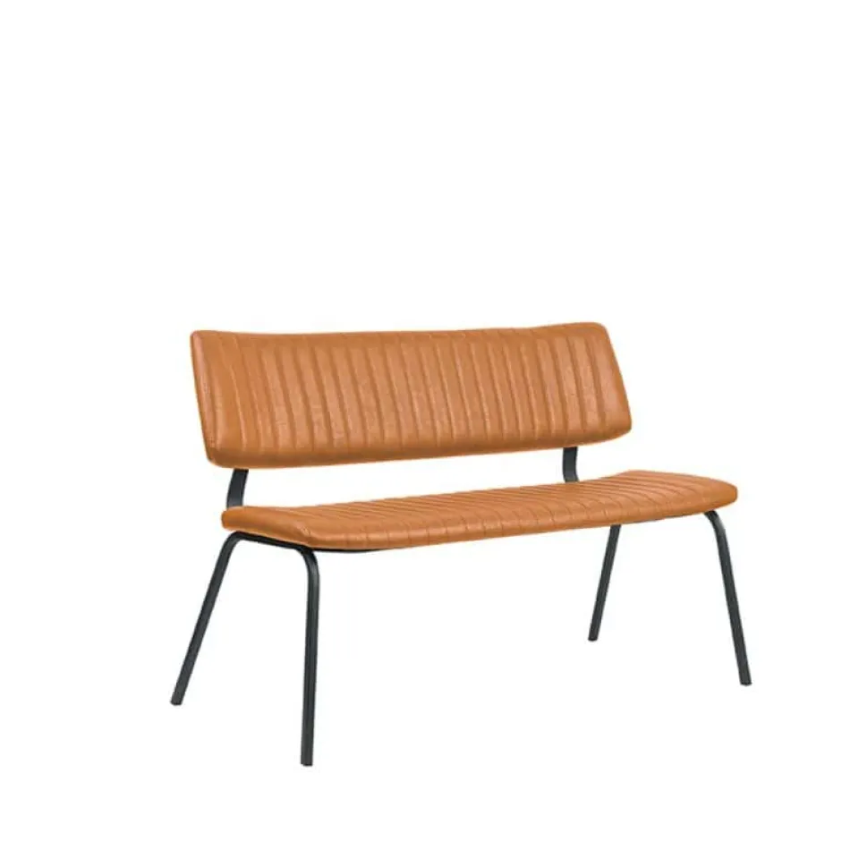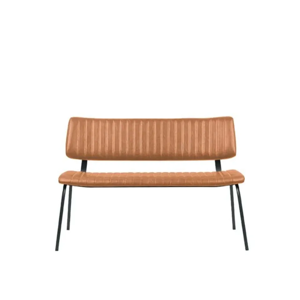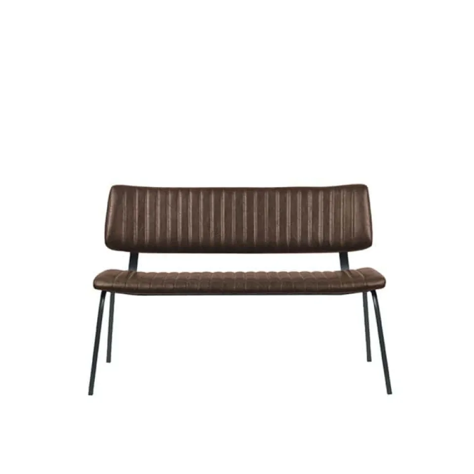Eetkamerbank Gusto van LABEL51 is een stijlvolle bank met een strak en modern design, perfect voor een eigentijdse eetruimte. De zitting en rugleuning zijn bekleed met kunstleder in een warme, bruine tint die zorgt voor een luxe uitstraling én praktisch gebruiksgemak. Het verticale stiksel op de rugleuning geeft de bank extra karakter, terwijl het minimalistische onderstel van zwart metaal zorgt voor een stoere en luchtige uitstraling. Gusto biedt een comfortabele zit en is ideaal voor lange, gezellige diners aan tafel.