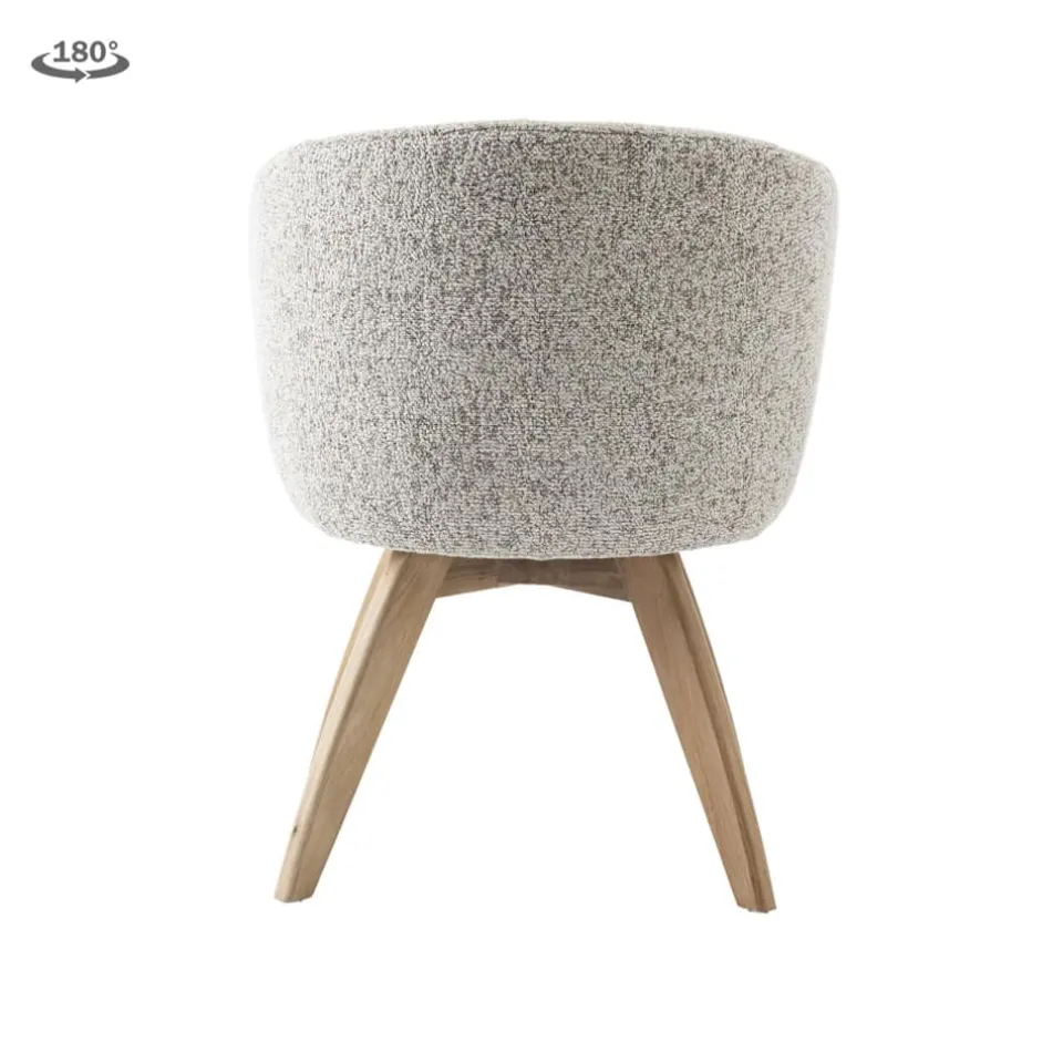 Eetkamerstoel Brescia is een elegante draaistoel die comfort en stijl combineert in een verfijnd ontwerp. De zitting is bekleed met een zachte, hoogwaardige stof en verkrijgbaar in twee rustige kleuren: grijs en beige. Dankzij het stevige onderstel van massief eikenhout straalt de stoel warmte en luxe uit, terwijl het natuurlijke materiaal zorgt voor stabiliteit en langdurig gebruik. De draaifunctie maakt Brescia extra praktisch aan tafel of in een flexibele werkomgeving.