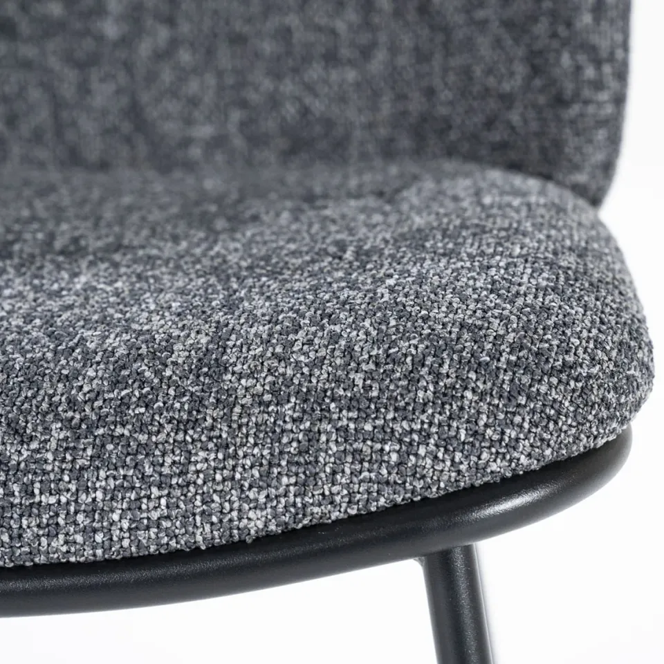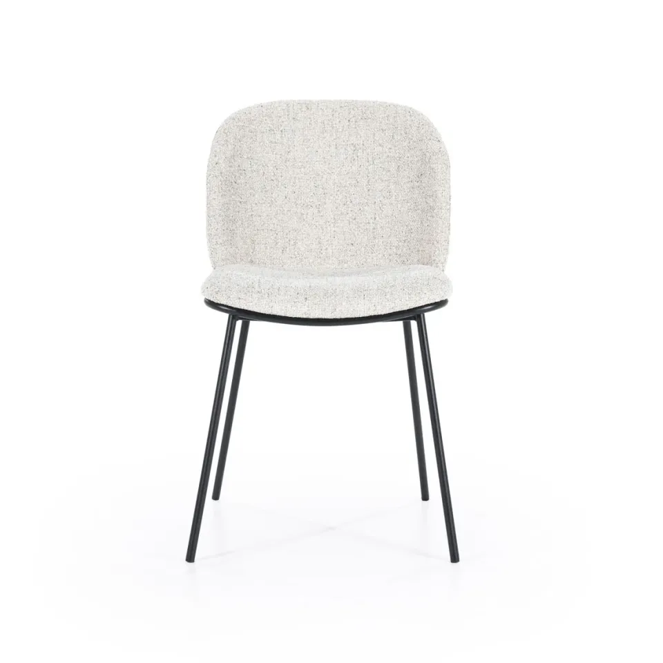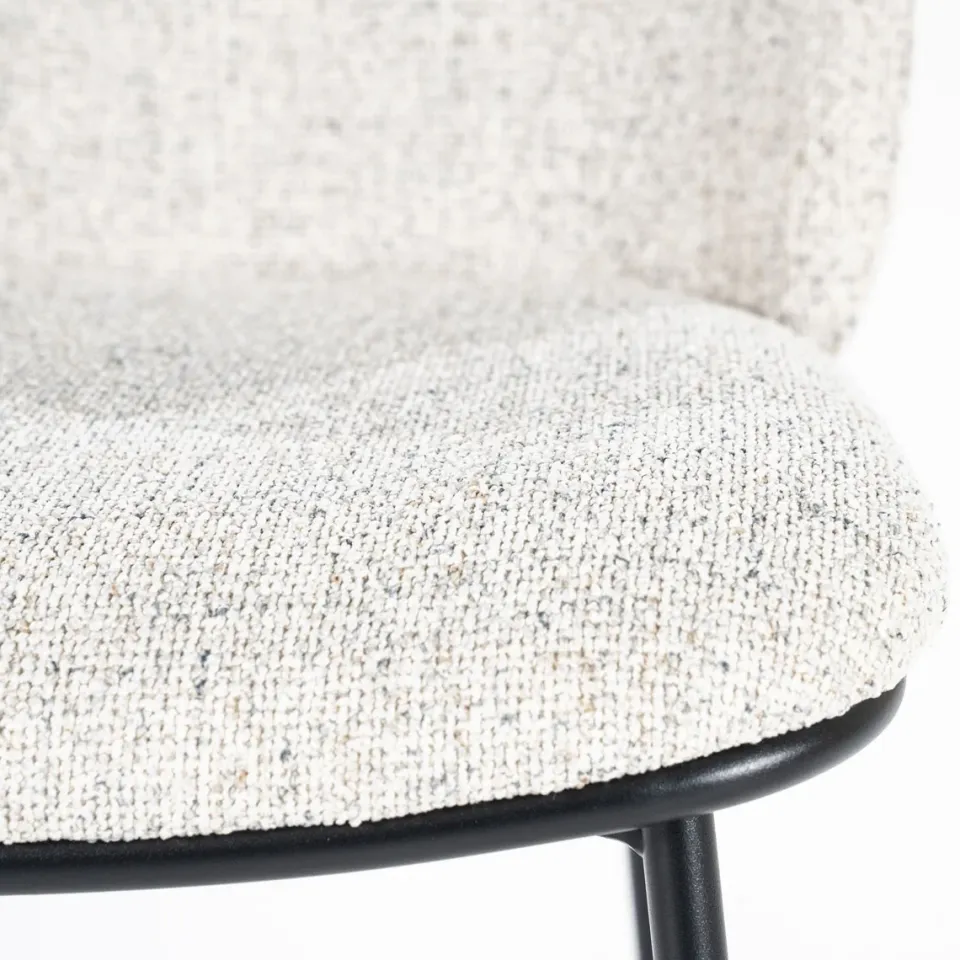 Eetkamerstoel Clypso van By-Boo is een moderne blikvanger die comfort en design moeiteloos combineert. De zitting is bekleed met een zachte, comfortabele stof en vormt een stijlvol contrast met het robuuste metalen onderstel. Het strakke silhouet en de afgeronde vormen geven de stoel een eigentijdse uitstraling, perfect voor een gezellige en moderne eethoek. Dankzij de stevige constructie is Clypso niet alleen mooi, maar ook geschikt voor dagelijks gebruik.