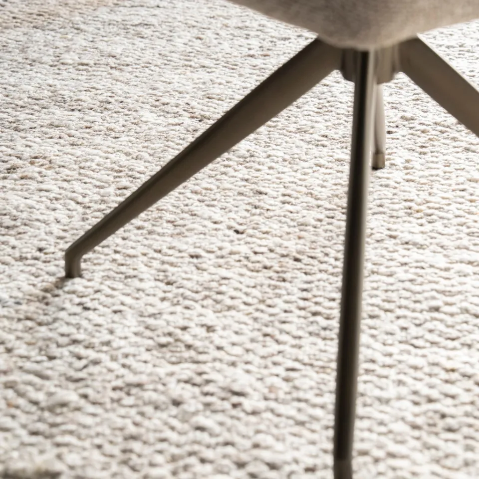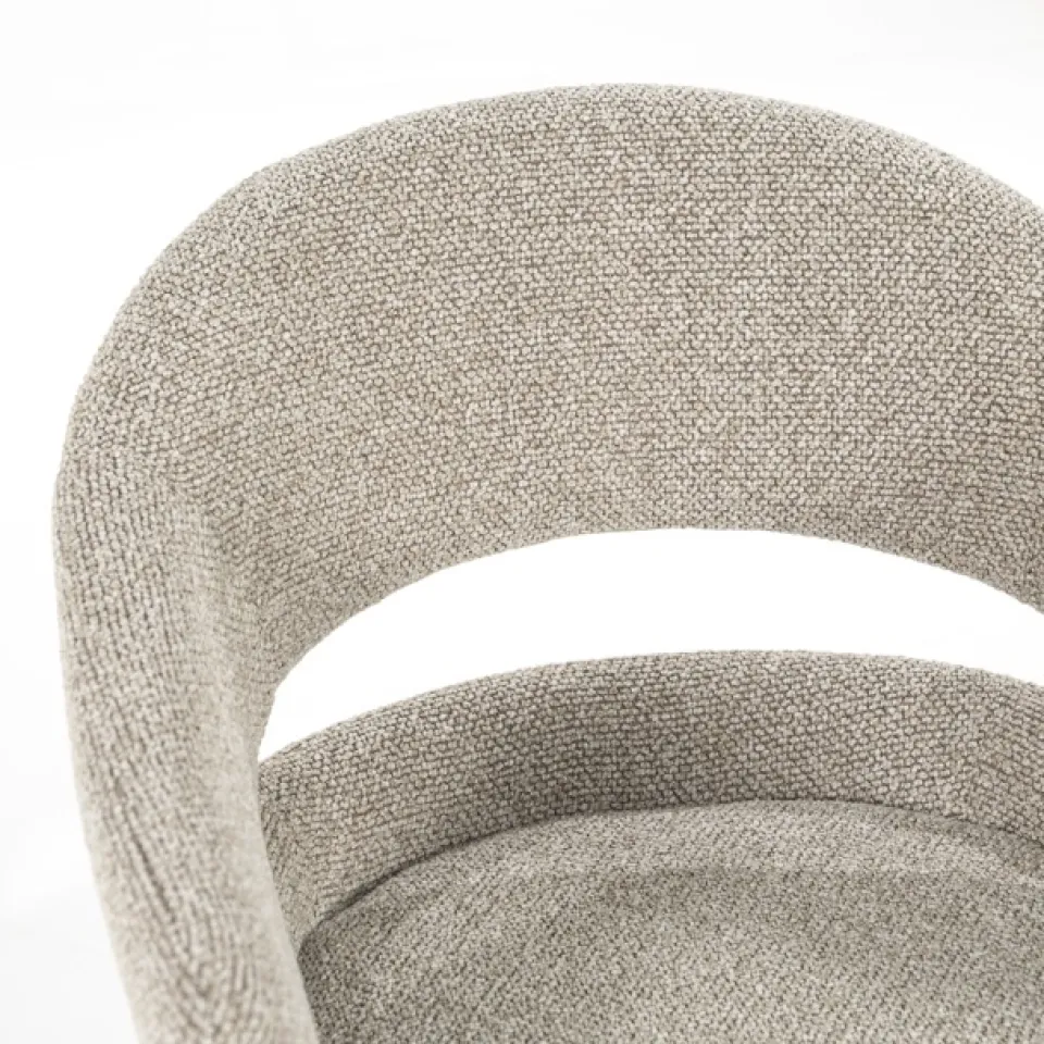 Eetkamerstoel Hailey combineert modern design met ultiem zitcomfort. De elegante ronde vorm en zachte bekleding geven de stoel een warme uitstraling, terwijl de 360 graden draaibare zitting zorgt voor extra gebruiksgemak. Verkrijgbaar in twee kleuren: taupe en beige. Hailey past moeiteloos in zowel klassieke als moderne eethoeken. De stevige, gecoate metalen poot zorgt voor een stabiele basis én een verfijnde afwerking.