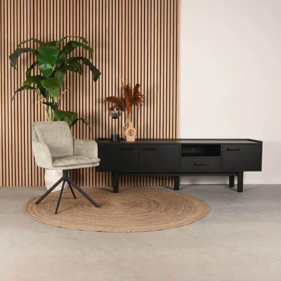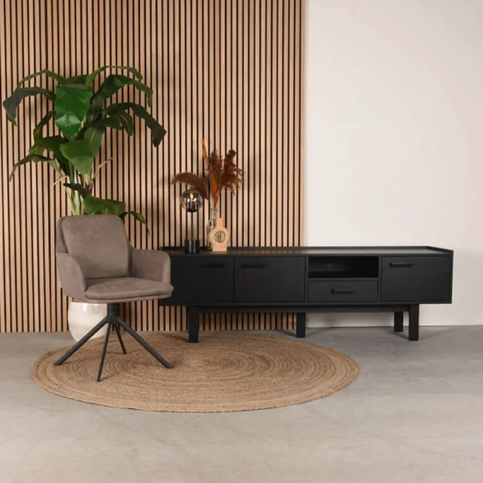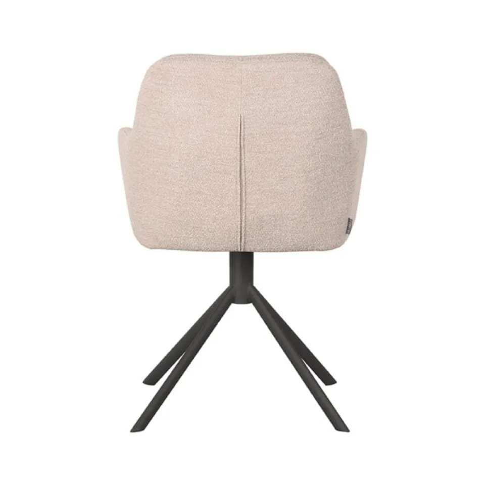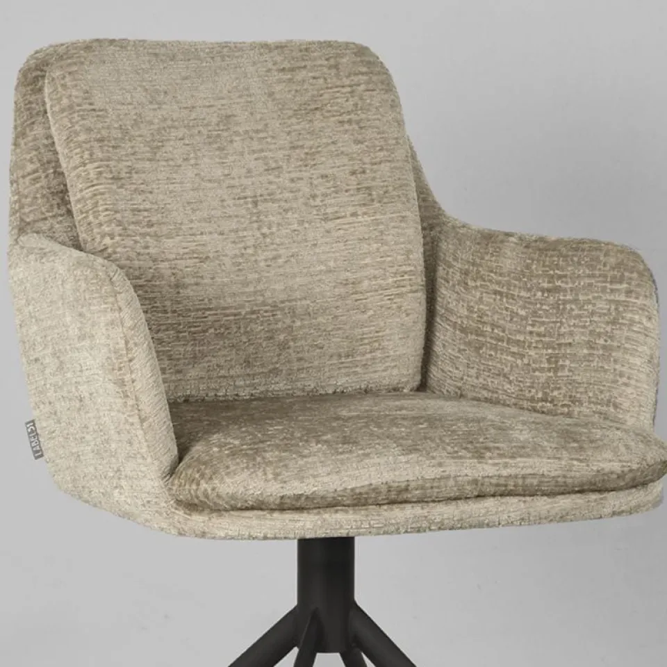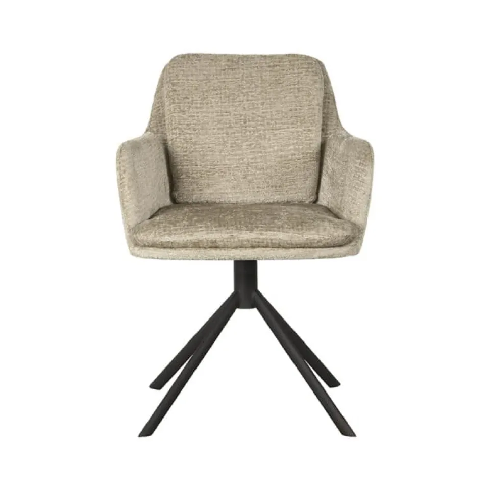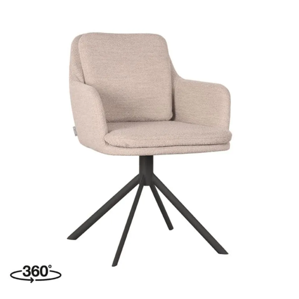 Eetkamerstoel Joy van het merk LABEL51 is een draaibare armstoel met een eigentijds ontwerp en een hoog comfortniveau. De zitting is voorzien van een vast kussen op de rug en het zitvlak, wat zorgt voor een luxe en uitnodigende uitstraling. Dankzij de 360 graden draaifunctie en het zwarte metalen spinonderstel is Joy niet alleen stijlvol, maar ook zeer functioneel. De stoel is verkrijgbaar in diverse hoogwaardige stoffen, waaronder taupekleurig micro suède, beige fluweel (Elegance) en naturel bouclé.