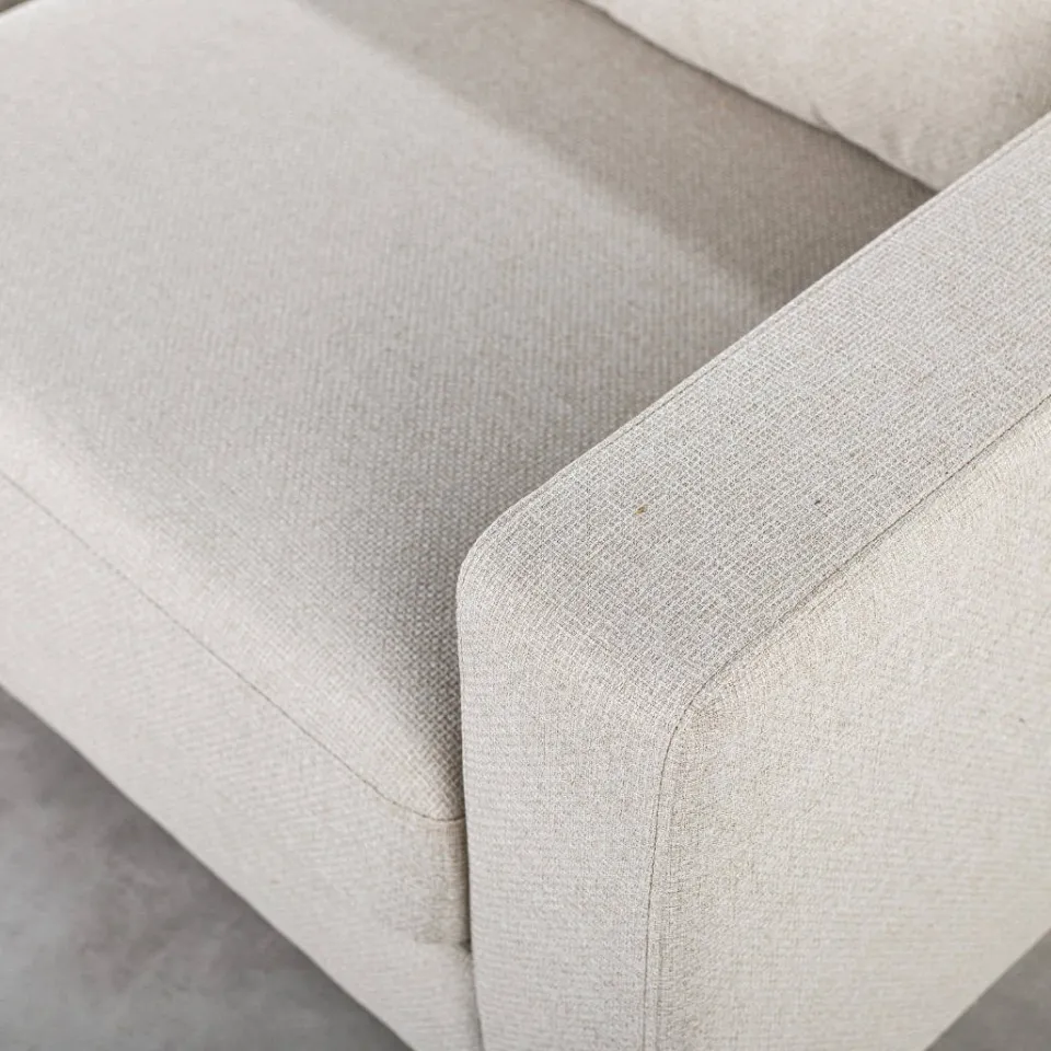 De bank is bekleed met 100% polyester en verkrijgbaar in stijlvolle kleuren zoals beige en ivoor. Deze lichte tinten zorgen voor een frisse basis in de woonkamer en laten zich eenvoudig combineren met andere meubels en accessoires. De comfortabele zitdiepte en prettige rughoogte bieden goede ondersteuning, waardoor je heerlijk kunt ontspannen, ook tijdens langere momenten op de bank.