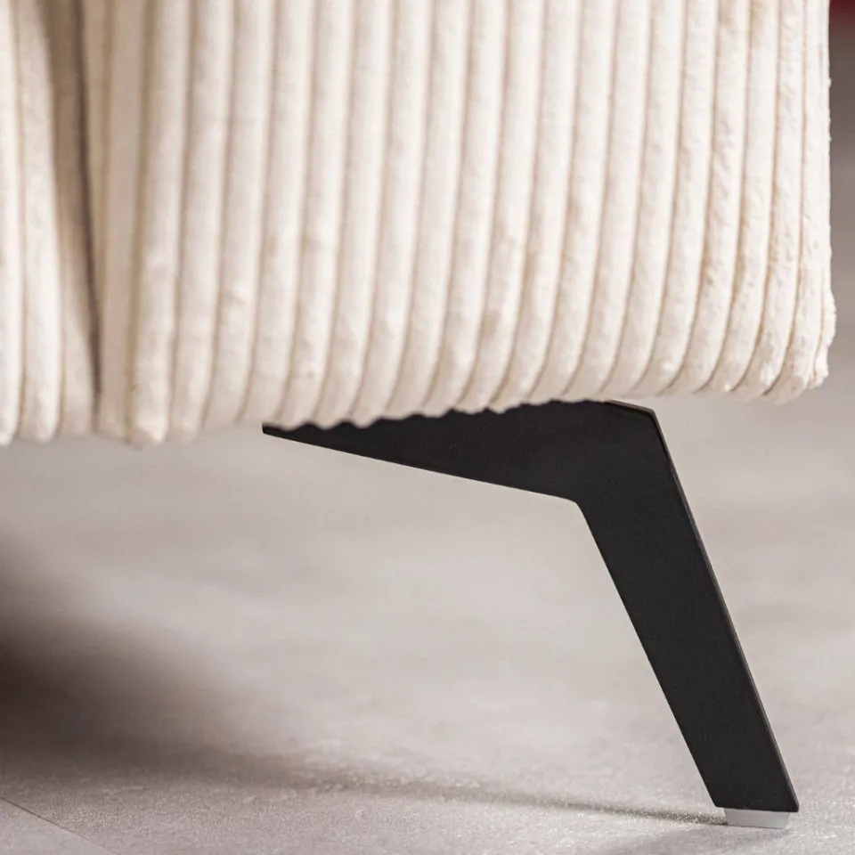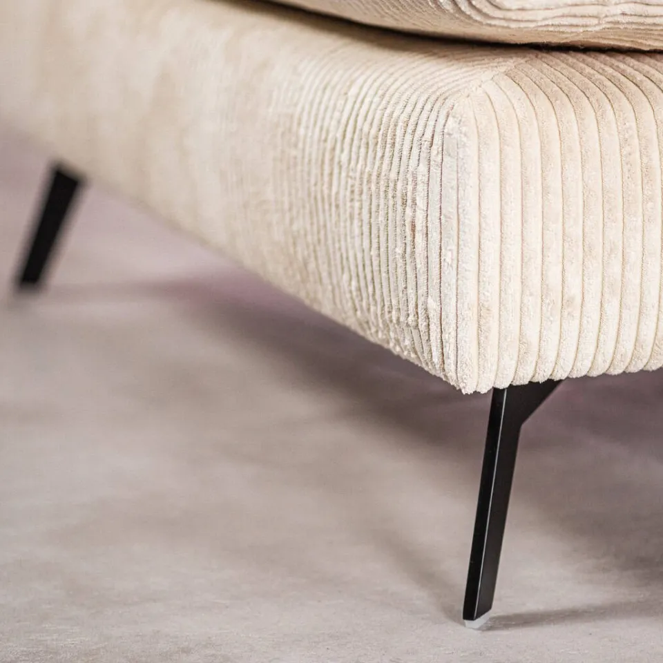 De bank is bekleed met de zachte stof Grace in een elegante naturel tint. Hierdoor oogt het geheel licht en warm, terwijl de stof prettig aanvoelt in dagelijks gebruik. Het comfortabele zitgevoel nodigt uit om te ontspannen en maakt deze hoekbank ideaal voor lange avonden in de woonkamer.