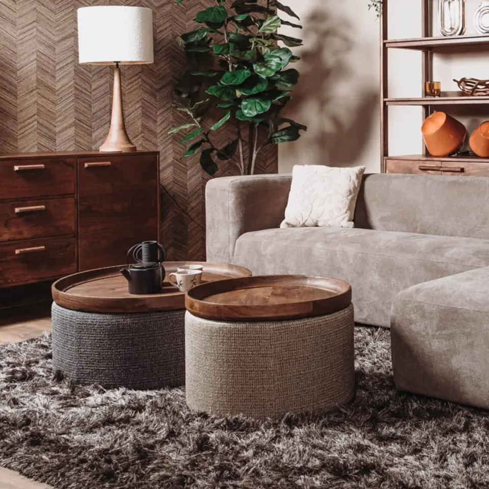 Combineer er eindeloos op los met de poefjes en tafeltjes van de collectie Ossana.