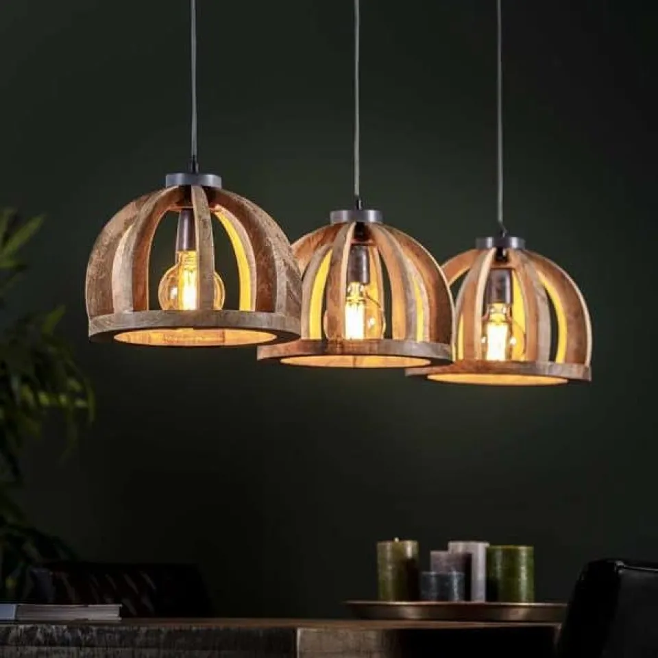 Deze Hanglamp Zelie is gemaakt van massief Mangohout met een natuurlijke kleur. Deze lamp raakt nooit meer uit de mode door zijn eenvoudige vorm en details blijft het een geweldige lamp om te zien. De kap is met een ketting aan de plafondplaat bevestigd, wat extra stevigheid biedt en daarnaast ook een stoer karakter geeft aan de lamp. Het licht van deze lamp komt goed en mooi door geboven houten spijlen heen. Deze hanglamp is in hoogte verstelbaar tot 150 cm. Zo kun je zelf bepalen hoe hoog of laag je de lamp boven je tafel en of in de hal wilt hebben hangen. Bekijk hier een andere hanglamp van mangohout.