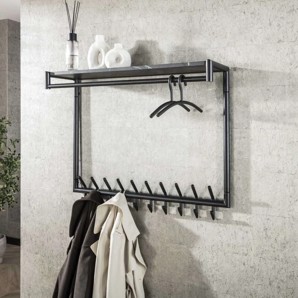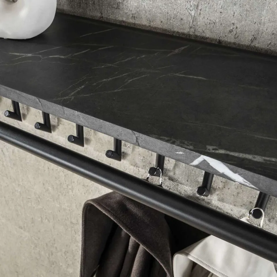 Deze kapstok is uitgevoerd in melamine met een ceramic uitstraling en beschikt over 10 of 20 haken, een roede en een prachtige hoedenplank. Deze kapstok is eigentijds en zo stijlvol. Deze kapstok kan door middel van twee bevestigingspunten eenvoudig aan de wand worden gemonteerd.