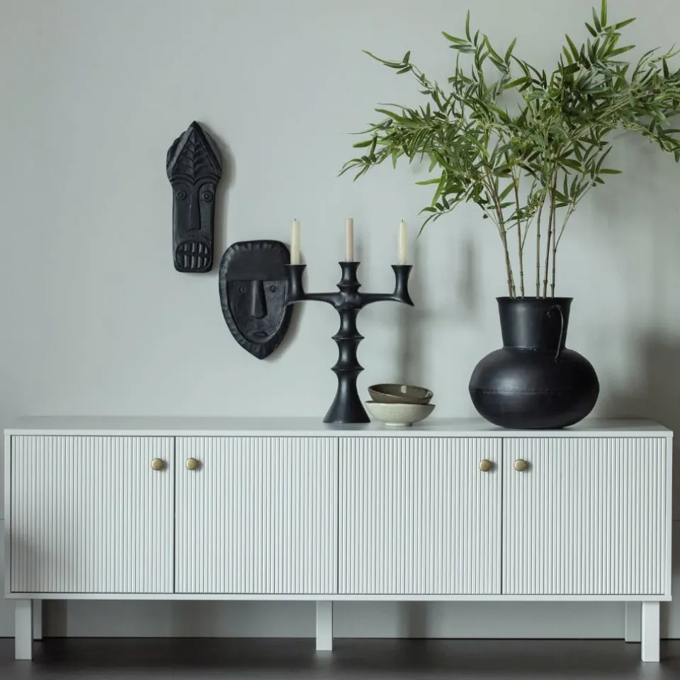 Madu is voorzien van vier deuren met goudkleurige knopjes. Achter deze deuren bevinden zich 4 legplanken. De ruimtes hebben een breedte van 76 cm en een diepte van 43 cm.