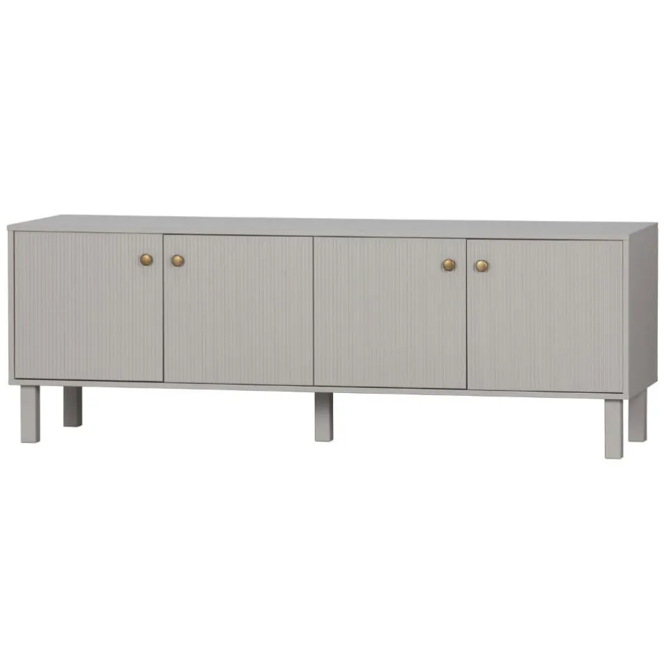 Madu is een stijlvol, modern tv-meubel vervaardigd uit grenenhout met een wolkengrijze afwerking. Dit geeft de kast een tijdloze uitstraling. De goudkleurige knoppen in combinatie met het lichtgekleurde grenenhout geven de kast tevens een moderne en stoer karakter.