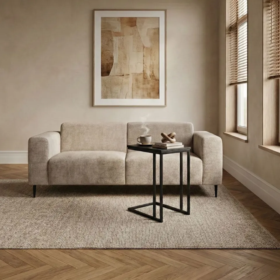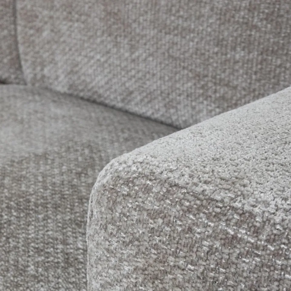 Het zitcomfort is zorgvuldig opgebouwd. De vulling van hoogwaardig foam, in combinatie met pocketvering en nosagvering, zorgt voor goede ondersteuning en een veerkrachtig zitgevoel. Daardoor zit de bank comfortabel, ook bij langer gebruik. De vaste zit- en rugkussens blijven netjes op hun plek, wat prettig is tijdens dagelijks gebruik en gezellige momenten samen. De hoge metalen poten geven de bank bovendien een luchtige uitstraling, waardoor de ruimte optisch ruimer oogt.