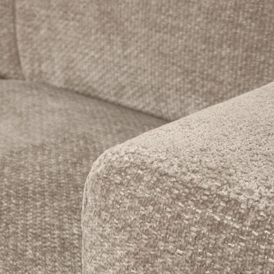 De bekleding is uitgevoerd in de kwalitatieve Elite stof en verkrijgbaar in kleuren zoals Naturel, Clay en Stone. Deze tinten zorgen voor een warme, tijdloze uitstraling en laten zich eenvoudig combineren met andere meubels en accessoires. Het stevige frame van multiplex met massieve delen biedt een solide basis en draagt bij aan de duurzaamheid van de bank.