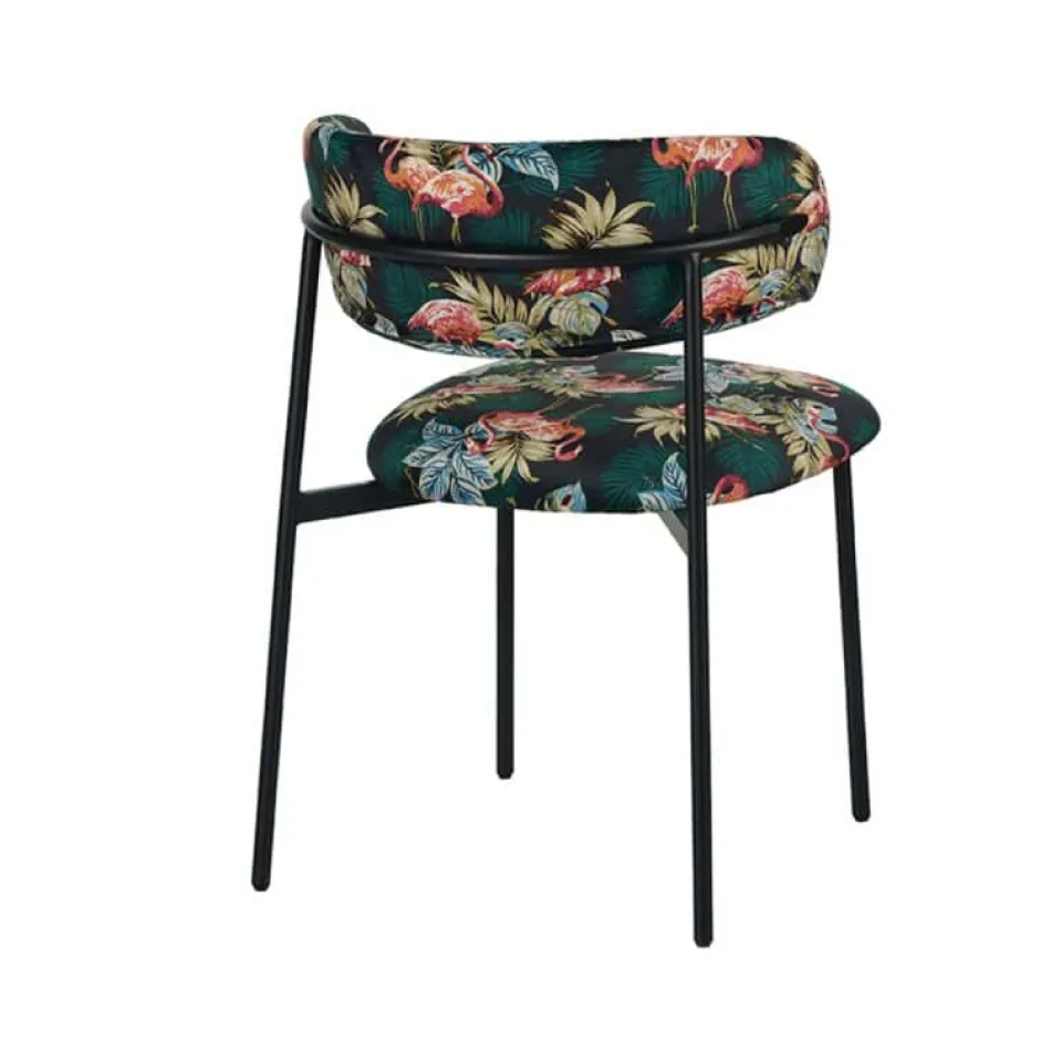 – Eetkamerstoel Ferry is voorzien van een hip en kleurrijk flamingoprintje.