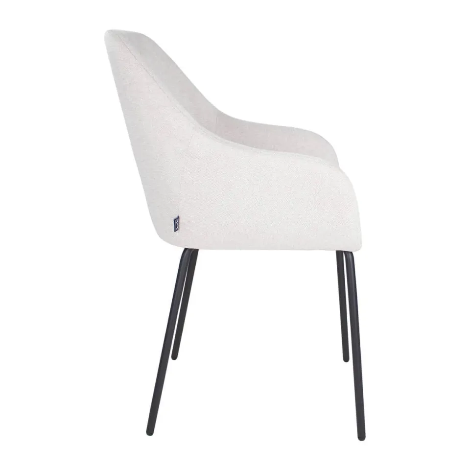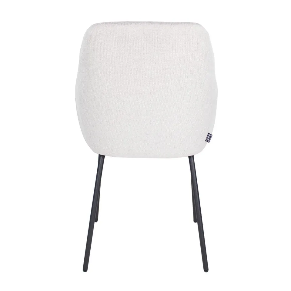 Eetkamerstoel Guus van KICK is een stijlvolle en comfortabele stoel met een modern design. De zitting is bekleed met zachte bouclé stof en heeft een afgeronde vorm die direct warmte en elegantie toevoegt aan je eethoek. De licht gebogen rugleuning en geïntegreerde armleuningen zorgen voor aangenaam zitcomfort, terwijl de verticale stiknaden de stoel een subtiele, verfijnde touch geven. Het slanke, zwart metalen onderstel maakt het geheel luchtig en stabiel. Guus is verkrijgbaar in verschillende trendy kleuren, waaronder zwart, taupe en naturel, en past moeiteloos in moderne of Scandinavische interieurs.