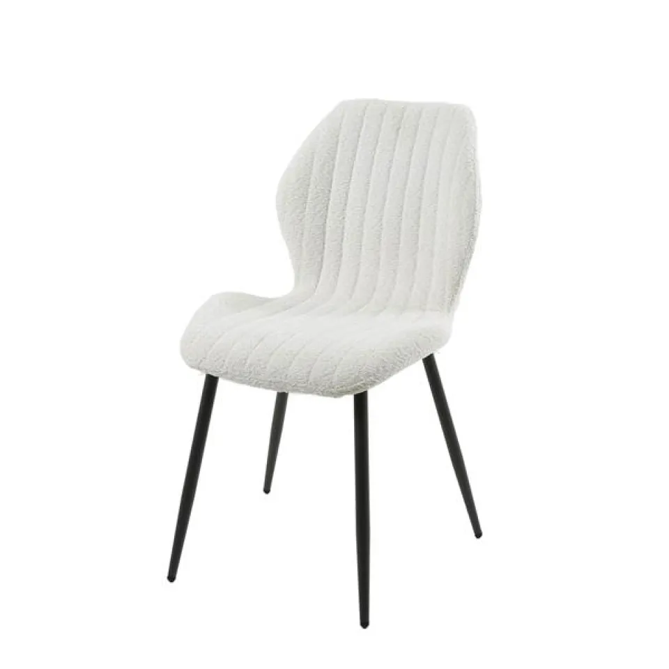 De Eetkamerstoel Lennie van HUUS combineert een modern design met comfortabele materialen. Bekleed met zachte bouclé-stof en ondersteund door een stevig metalen frame, biedt deze stoel een aangename zitervaring. Met afmetingen van 48 × 58 × 86 cm, een zithoogte van 47 cm en een zitdiepte van 41 cm is de Lennie ideaal voor lange diners of gezellige avonden aan tafel. Verkrijgbaar in de kleuren grijs, wit en zand, past deze stoel moeiteloos in diverse interieurstijlen. Let op: de Eetkamerstoel Lennie is alleen per set van 4 stuks te bestellen.