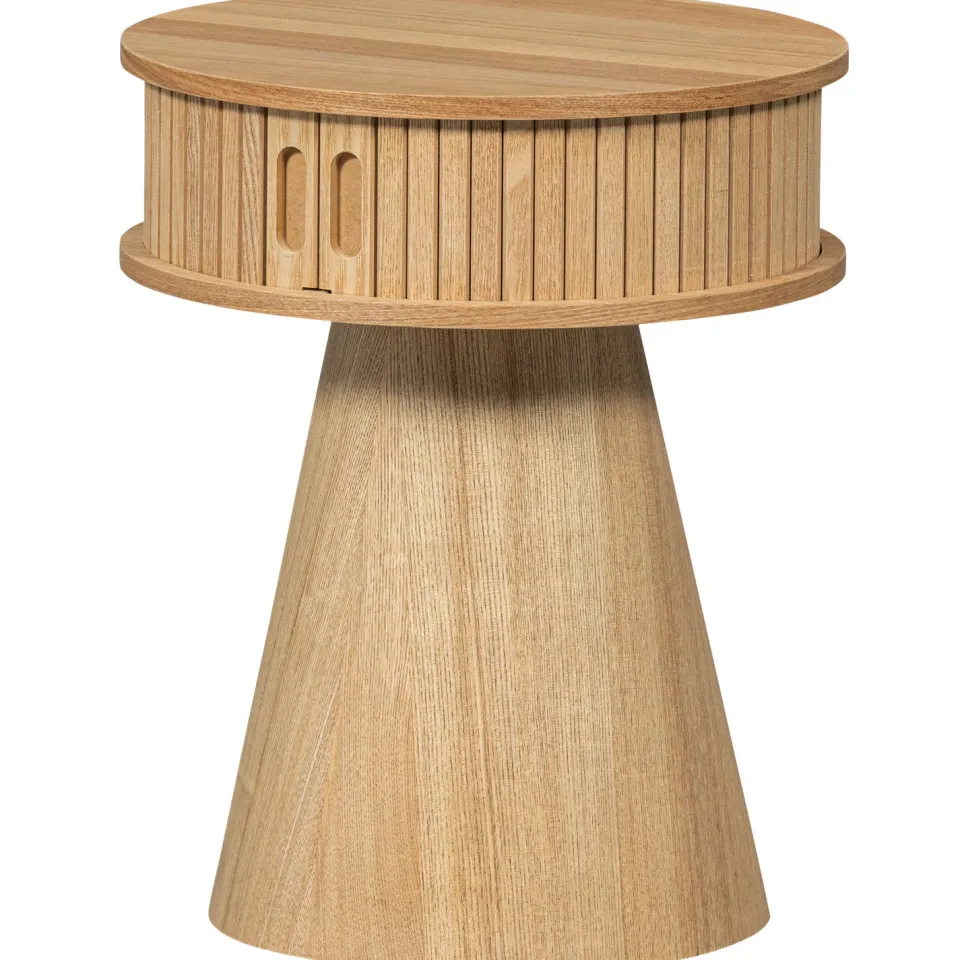 Het Karri nachtkastje komt uit de collectie van het Nederlandse interieurmerk WOOOD en is stijlvol door het unieke design. Gemaakt van populierenhout, biedt het kastje een warme, natuurlijke uitstraling die naadloos aansluit bij verschillende interieurstijlen. Bovendien biedt het Karri nachtkastje praktische opbergruimte achter de aanwezige schuifdeurtjes. De doordachte indeling zorgt ervoor dat je essentials altijd binnen handbereik zijn, terwijl je slaapkamer netjes en georganiseerd blijft.