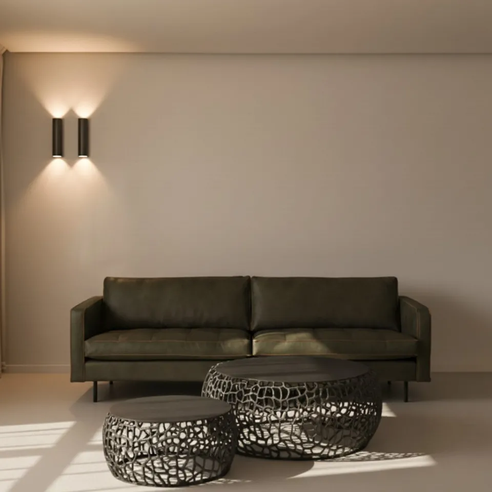 Deze salontafel bestaat uit een set van 2. Beide tafels zijn voorzien van een zandgegoten dun bovenblad van zwart nikkel. Het decoratieve onderstel is uitgevoerd in aluminium en geeft de salontafels een speels uiterlijk. Samen en apart te combineren