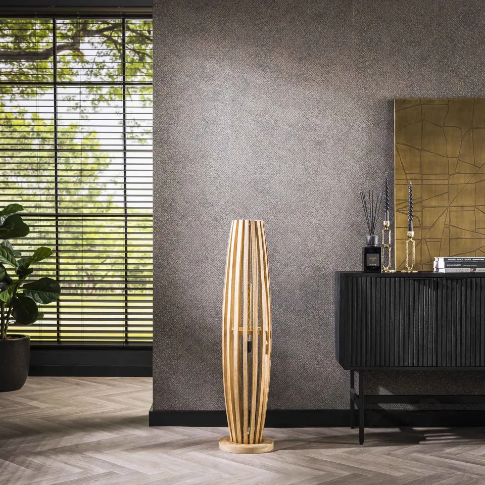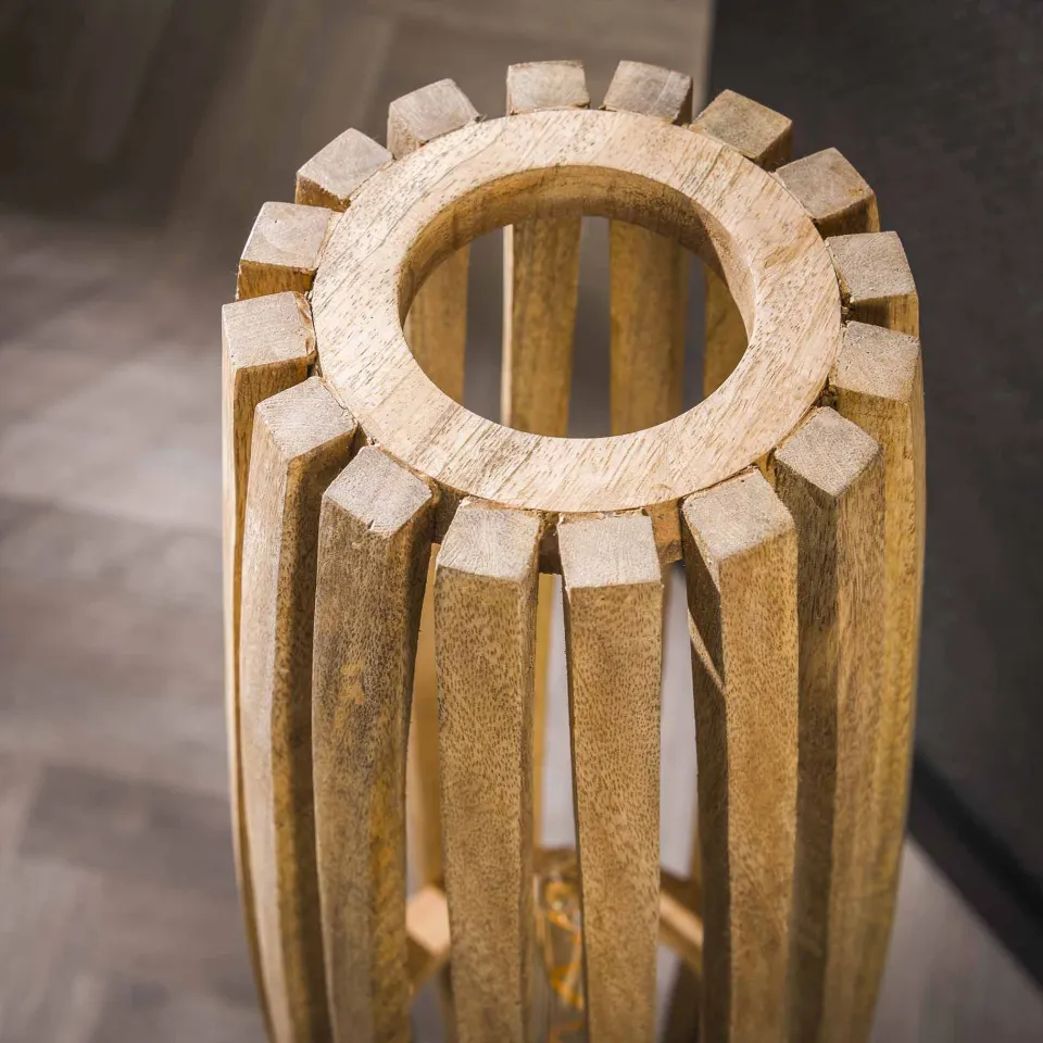 Deze trendy vloerlamp Oase is uitgevoerd in mango hout. De houten spijlen geven een sfeervolle licht verdeling en maakt deze lamp een echte eye-catcher! Deze lamp maakt onderdeel uit van de Oase serie.