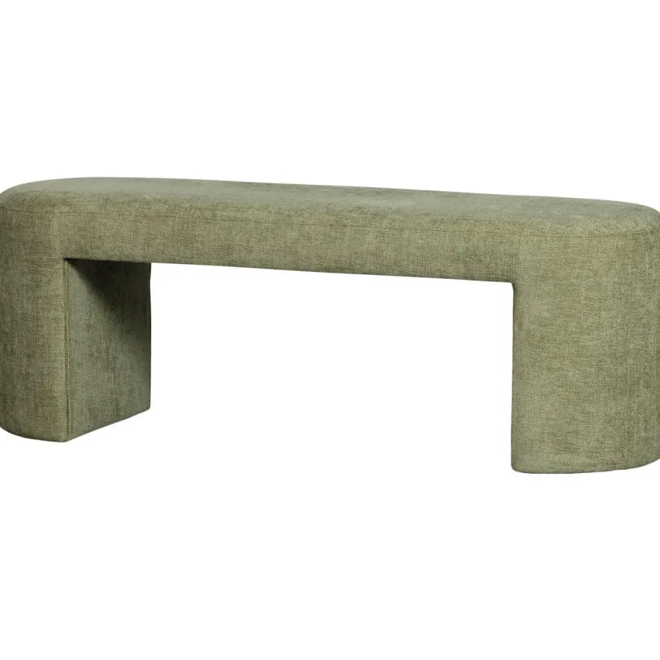 Het bankje is volledig bekleed met een zachte chenille stof. Deze stof heeft een rijke structuur met een subtiele glans, wat zorgt voor een luxe en warme uitstraling. Tegelijk voelt de bekleding comfortabel aan en is zij geschikt voor dagelijks gebruik. De royale zitting biedt ruimte aan twee tot drie personen, terwijl het compacte formaat ervoor zorgt dat het bankje ook in kleinere ruimtes goed tot zijn recht komt.