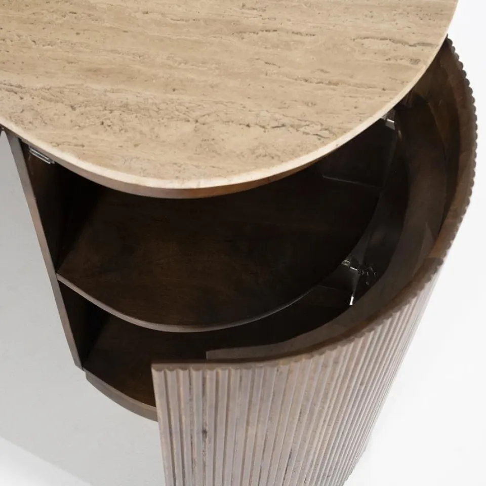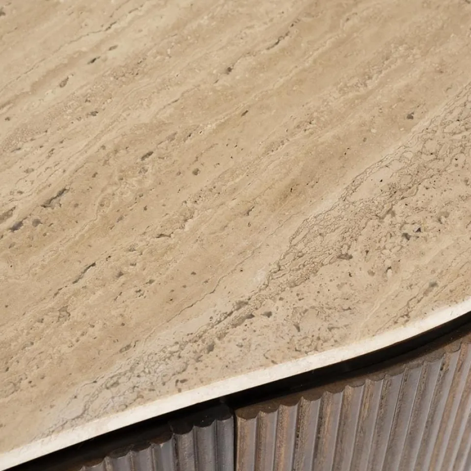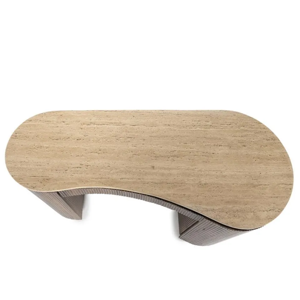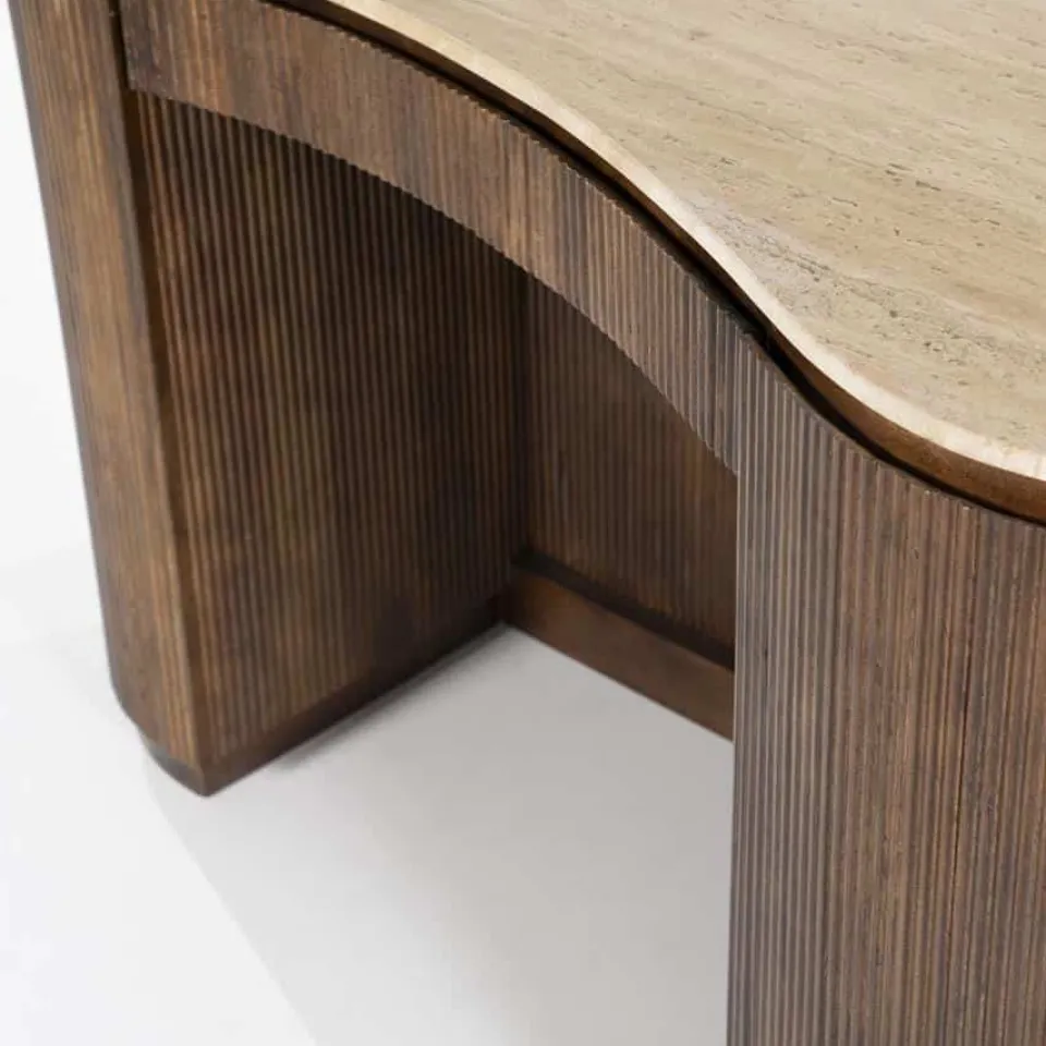 Bureau Mari – een elegante mix van mangohout en travertin. Dit organisch gevormde bureau straalt natuurlijke schoonheid uit en voegt een unieke touch toe aan elk interieur. Perfect voor een stijlvolle werkplek!