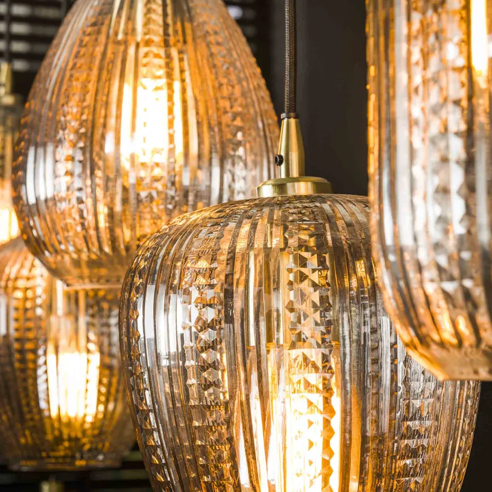 Deze trendy hanglamp Lolita is uitgevoerd in glas en een echte must have! De kapjes zijn ambachtelijk bewerkt en dit geeft de lamp een luxe uitstraling. De kapjes zijn ieder tot 150 cm in hoogte verstelbaar en kunnen daardoor naar eigen inzicht op speelse wijze versteld worden.
