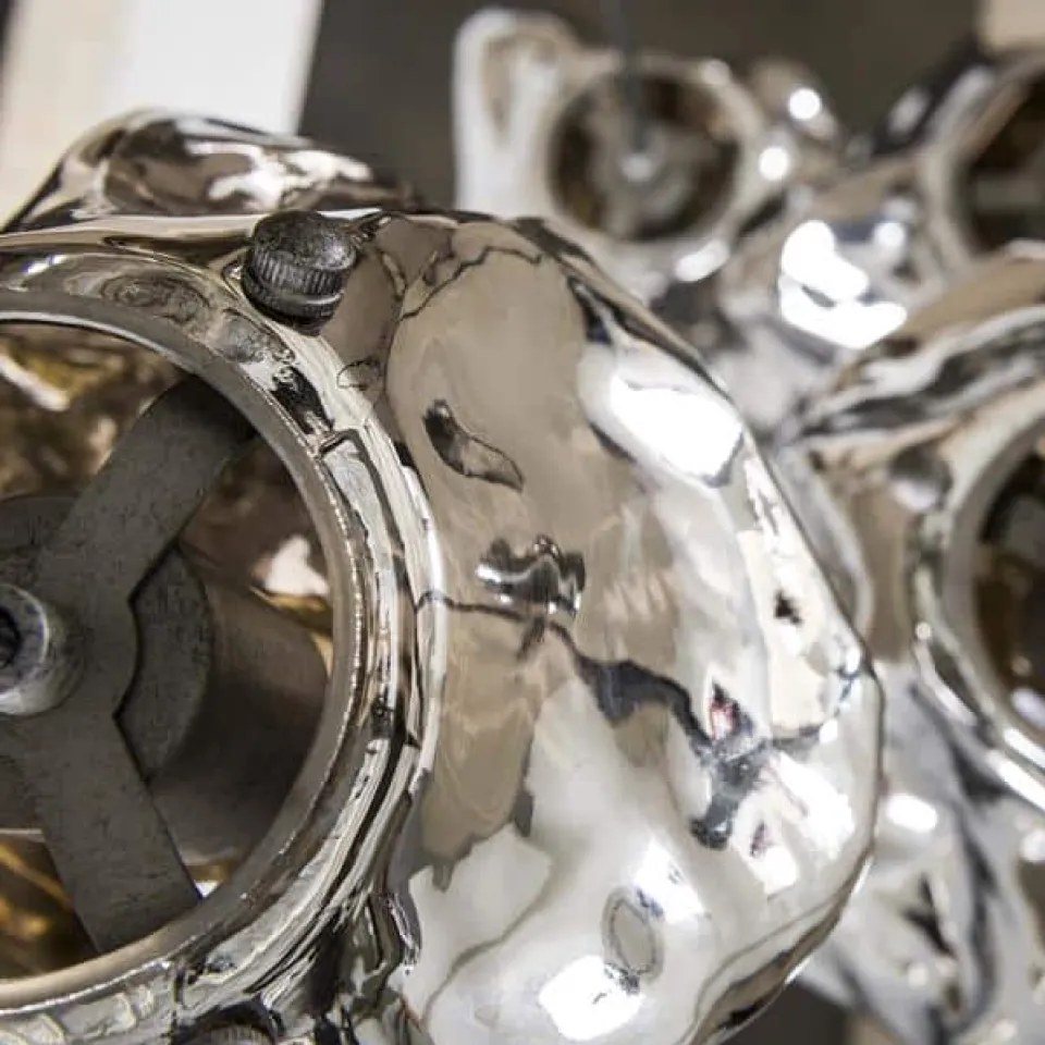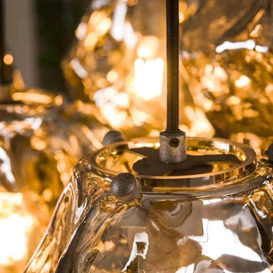 Deze hanglamp is een echte eye-catcher en geeft een trendy uitstraling aan ieder interieur. De kappen zijn gemaakt uit mond geblazen glas. De kap heeft een kleine opening waardoor de lichtbron door middel van een klein frame in het kap gezet kan worden. De kappen zijn ieder tot 150 cm in hoogte verstelbaar. Deze lamp is perfect voor boven een ronde tafel of om in de hoek van de kamer te hangen bijvoorbeeld.