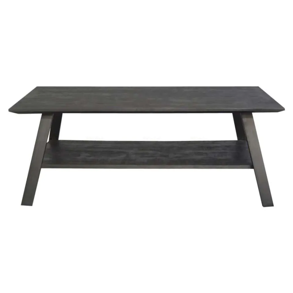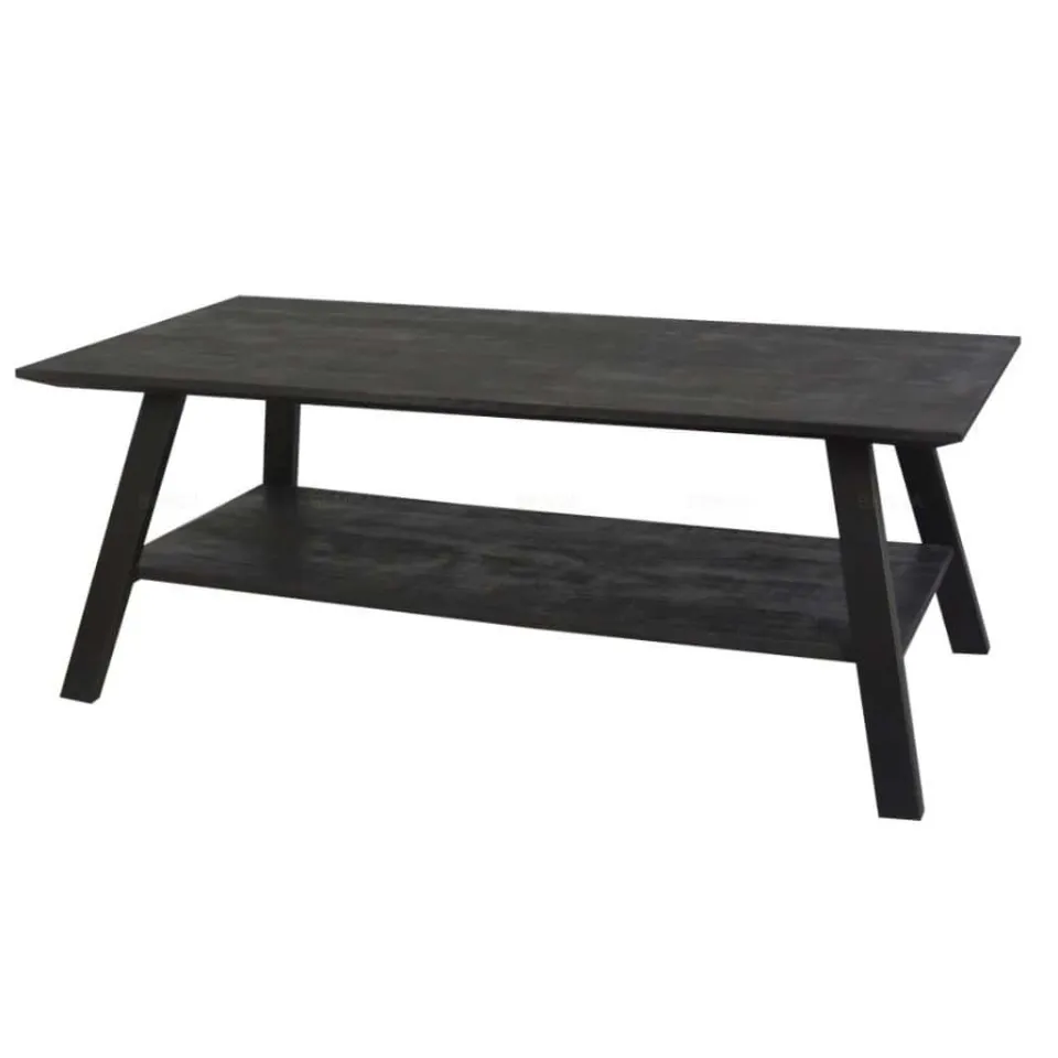 Strak zwart of bruin met naturel mangohout met ge-poedercoat stalen poten.