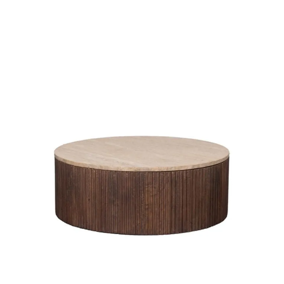 Salontafel Ribble geeft een stijlvolle touch aan ieder interieur. Met zijn retro ribbel, in combinatie met het trendy travertin blad, is Ribble echt een allemans vriend.
