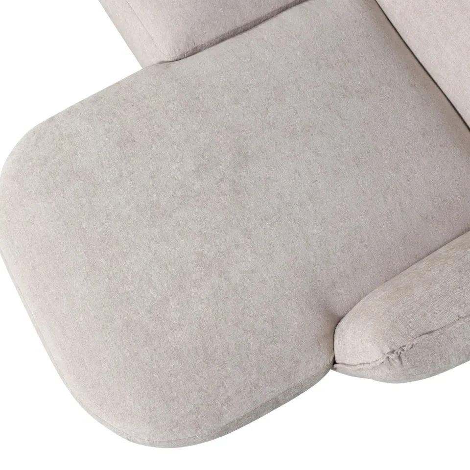 De bank is bekleed met een zacht geweven stof die prettig aanvoelt en een volle uitstraling geeft. Bovendien zorgen de subtiele kleurnuances en het zichtbare weefpatroon voor extra diepte en karakter. De afgeronde vormen vergroten het zitoppervlak en dragen bij aan een ontspannen zitcomfort. Daardoor is Polly geschikt voor zowel loungen als dagelijks gebruik.