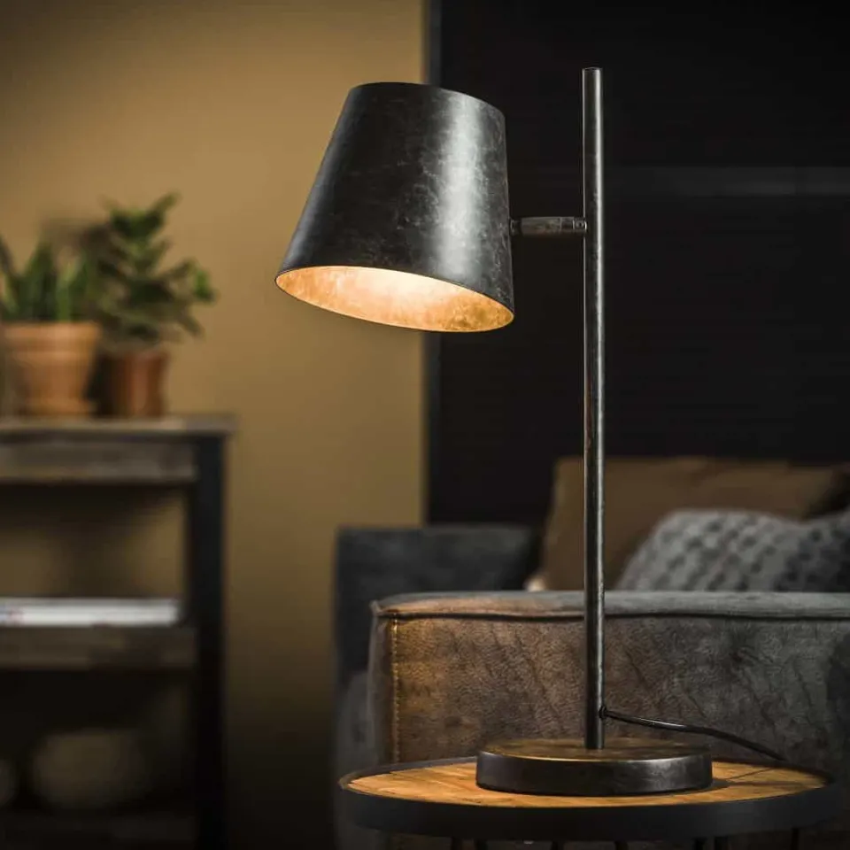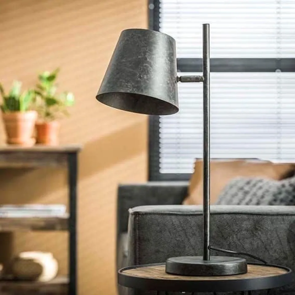 Deze tafellamp heeft een verstelbare kap, waardoor het licht juist geplaatst kan worden. De lamp is afgewerkt in de kleur charcoal. De combinatie van de kleur en het armatuur geven de lamp een vintage look. De stroomkabel zit in het armatuur verwerkt.