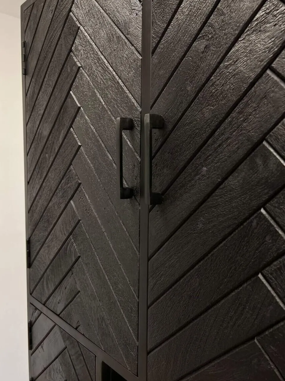 Wandkast Floor is een elegante blikvanger die luxe en karakter toevoegt aan je interieur. Gemaakt van zwart mangohout en afgewerkt met een verfijnd visgraatmotief straalt deze kast klasse en warmte uit. Dankzij de combinatie van deuren en lades biedt Floor volop opbergruimte voor al je spullen, terwijl het design moeiteloos past in moderne en industriële woonstijlen. Verkrijgbaar in twee formaten, zodat je de kast perfect kunt afstemmen op jouw ruimte.