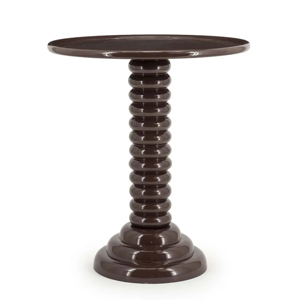 Ontdek bijzettafel Basco, een prachtig en speels meubelstuk dat direct de aandacht trekt in elke ruimte. Gemaakt van hoogwaardig, gecoat aluminium in een stijlvolle donkerbruine kleur, biedt deze bijzettafel een chique en verfijnde uitstraling. De unieke ronde vormen van de tafelpoot geven bijzettafel Basco een bijzonder en modern karakter, terwijl het speelse ontwerp zorgt voor een levendige en dynamische toevoeging aan je interieur. Perfect voor het plaatsen van decoratieve items, een kopje koffie, of een boek naast je favoriete fauteuil.
