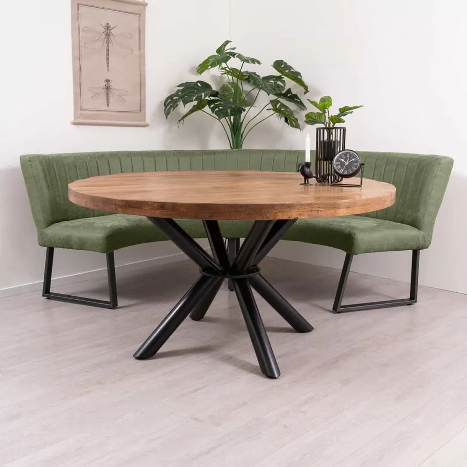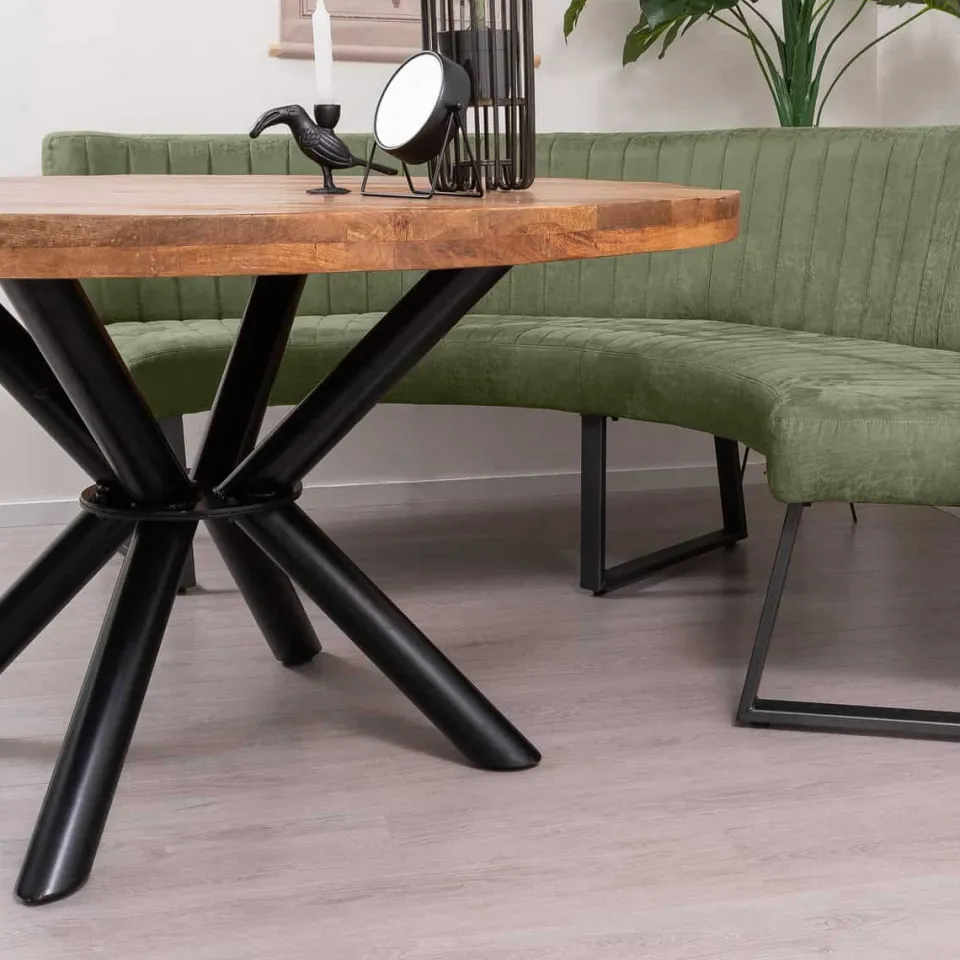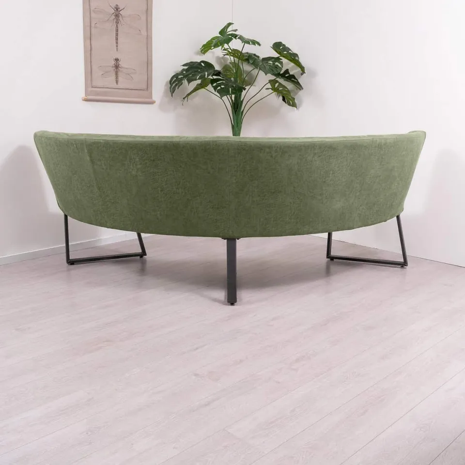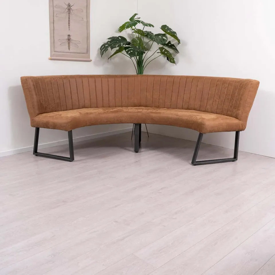 De Eetkamerbank Soof van HUUS combineert comfort met een stijlvolle uitstraling. Dankzij de afgeronde vormgeving sluit Soof perfect aan bij ronde eettafels, zoals de Monique. Bekleed met hoogwaardige Missouri-stof en ondersteund door een stevig metalen frame, biedt deze bank een moderne look en stabiele zit. Verkrijgbaar in de kleuren groen, antraciet en cognac, en in lengtes van 130 cm en 150 cm, past Soof moeiteloos in diverse interieurstijlen. Met een zithoogte van 50 cm en een rugleuning van 90 cm is langdurig tafelen gegarandeerd comfortabel.