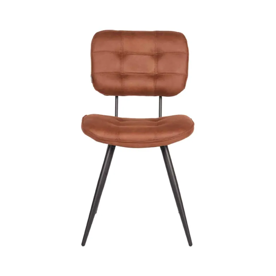 Eetkamerstoel Gus van het merk LABEL51 is een elegante en functionele stoel met een doordacht design. De zitting en rugleuning zijn los van elkaar gevormd en verbonden met een rond metalen frame, wat zorgt voor een open uitstraling en extra zitcomfort. Op de achterkant van de rugleuning bevindt zich een handgreep, waarmee de stoel eenvoudig te verplaatsen is. De subtiele blokstiksels op de zitting en rug geven Gus een verfijnd detail, terwijl de iets uitlopende, zwarte poten zorgen voor stabiliteit en een luchtige look. De stoel is verkrijgbaar in meerdere kleuren.