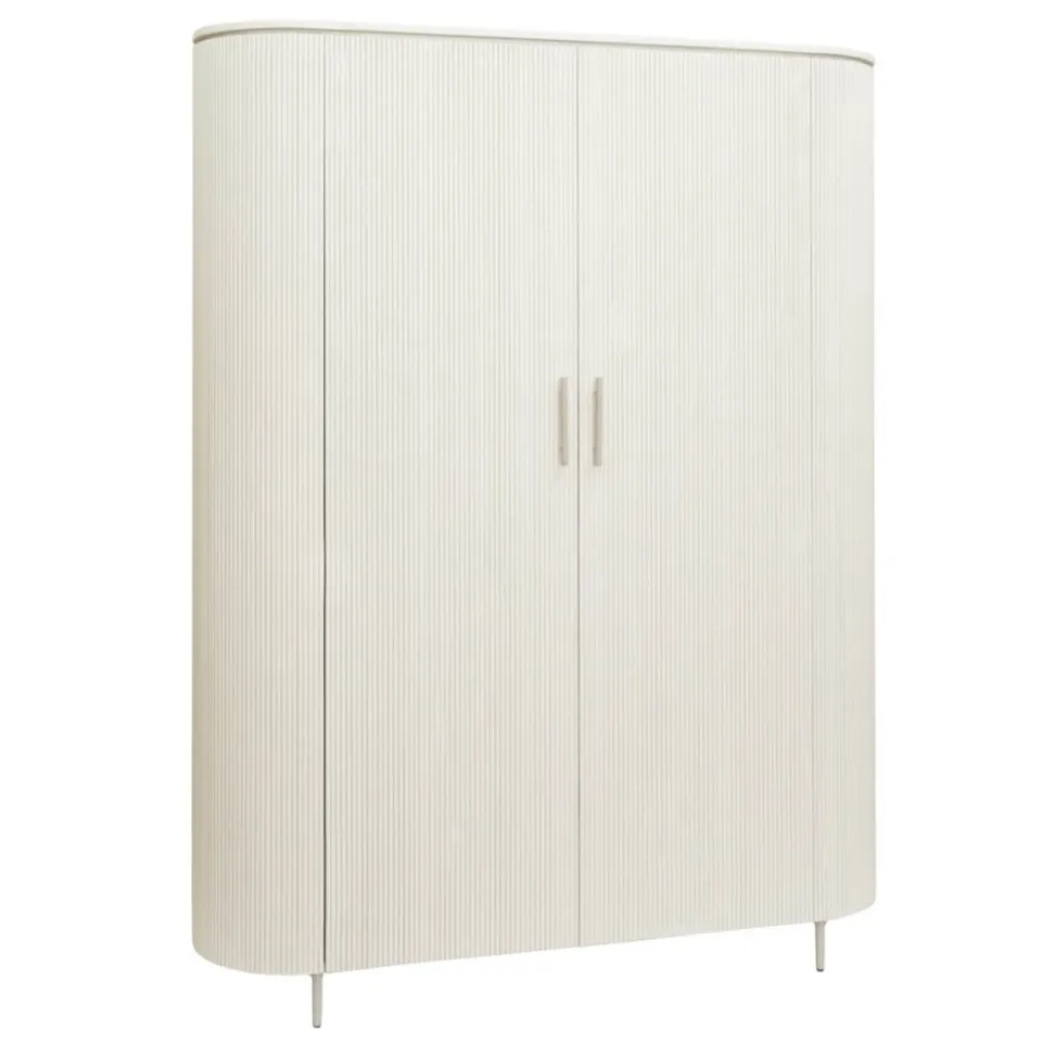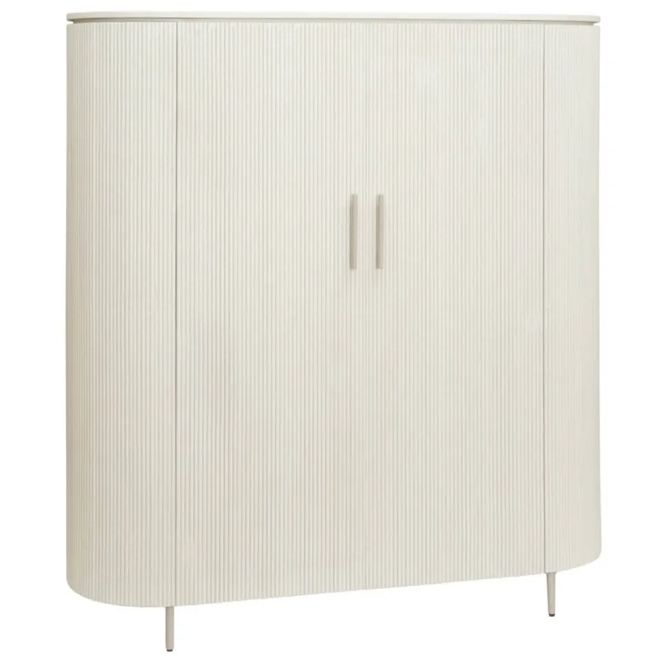 Ontdek de Kast Corbetta. Dankzij de ronde vorm is ‘ie echt een moderne eyecatcher. Het mangohout met stone finish geeft Corbetta een chique look. De uitsparing tussen het hout zorgt voor een strak design, helemaal in combinatie met die cleane handgrepen en poten. Een stijlvolle toevoeging aan je interieur!