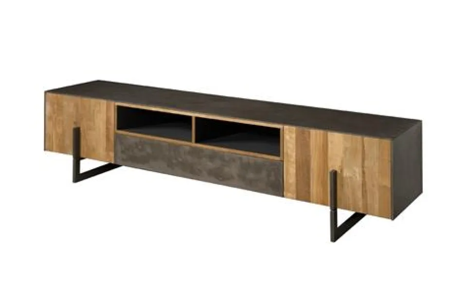 Het Ora TV-meubel is een modern en eigentijds meubel, gemaakt van gerecycled teakhout. Het Ora TV-meubel heeft een modern design, met een poot die overloopt in de handgreep. Door dit unieke design en de combinatie met de metalen poot, is Ora perfect voor als je opzoek bent naar industriële meubelen, die net even anders zijn. De koperkleur die je ziet, heeft een prachtige natuurlijke uitstraling. Dit komt door het arbeidsintensieve productieproces, waarbij er met de hand 7 lagen worden aangebracht. Hierbij wordt een koper poeder gebruikt voor de uitstraling en de mooie kleur. Alle deuren en lades zijn voorzien van een push to open-systeem. Het TV-meubel heeft twee deuren, één lade en één open vak. Combineer dit artikel met de overige meubels uit onze collectie Ora!