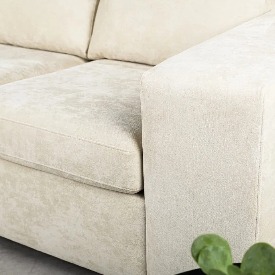 De bank is bekleed met 100% polyester en verkrijgbaar in stijlvolle kleuren zoals beige en bruin. Deze tinten maken het eenvoudig om de bank te combineren met andere meubels en accessoires. De royale zitting biedt volop ruimte om comfortabel te zitten of heerlijk te loungen. Tegelijk zorgt de prettige vulling voor goede ondersteuning, ook wanneer je langere tijd op de bank doorbrengt.